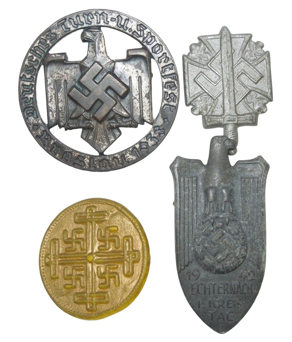 WWII German Military Tinnies & Pins Lot Breslau 1938 Echternach
