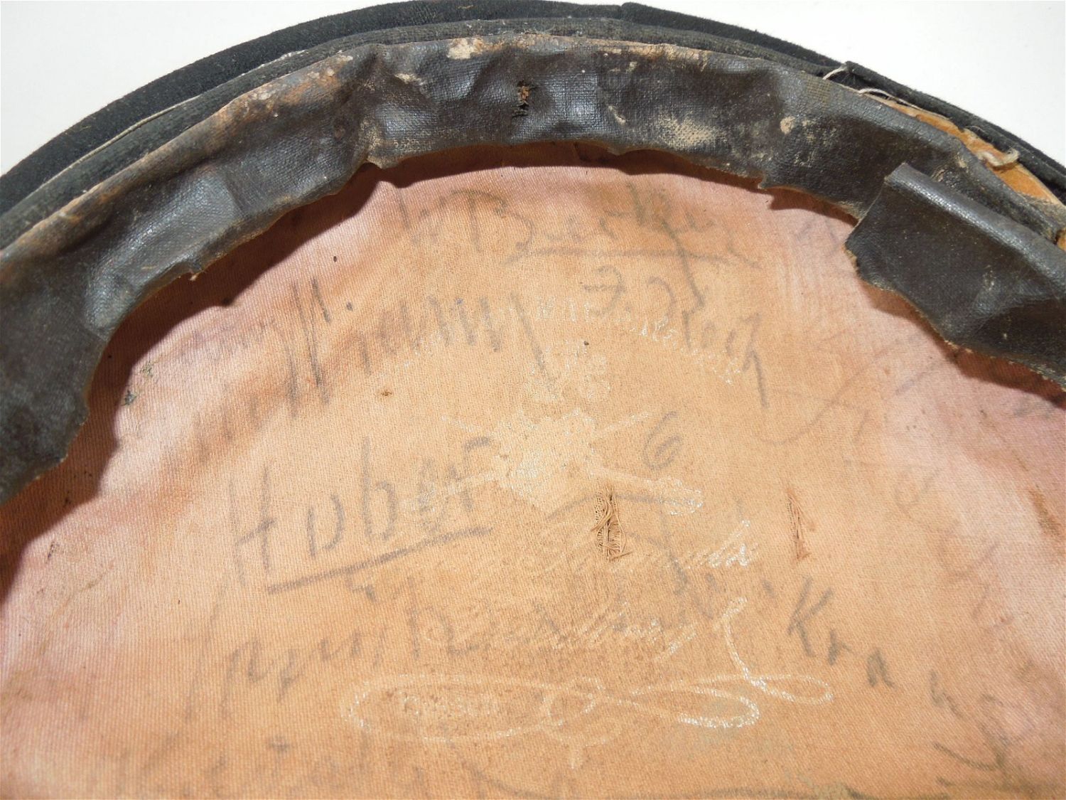 Small sized German cap with names inside. Unknown usage, well worn condition wise. Condition: See Description for Condition Report.