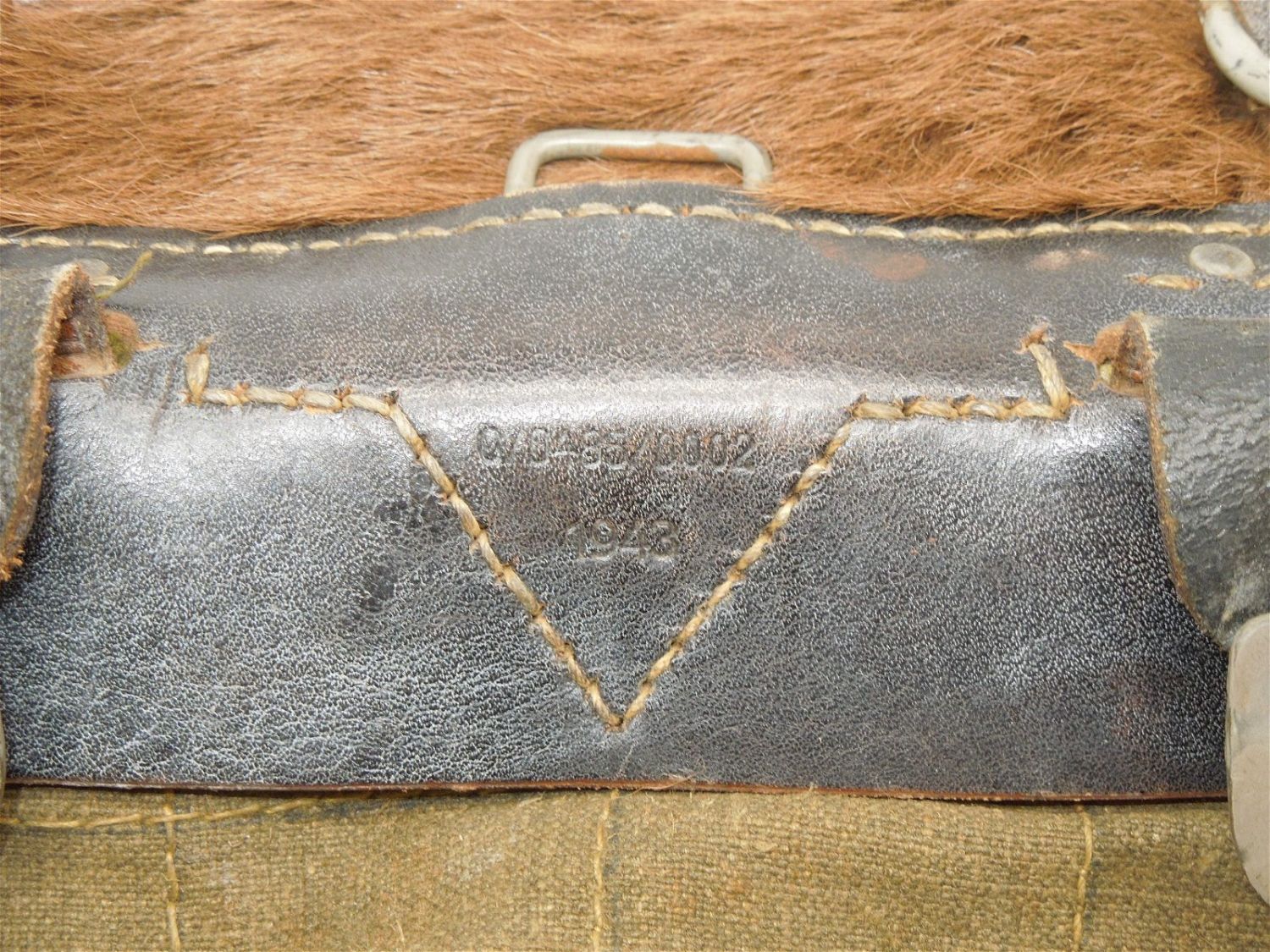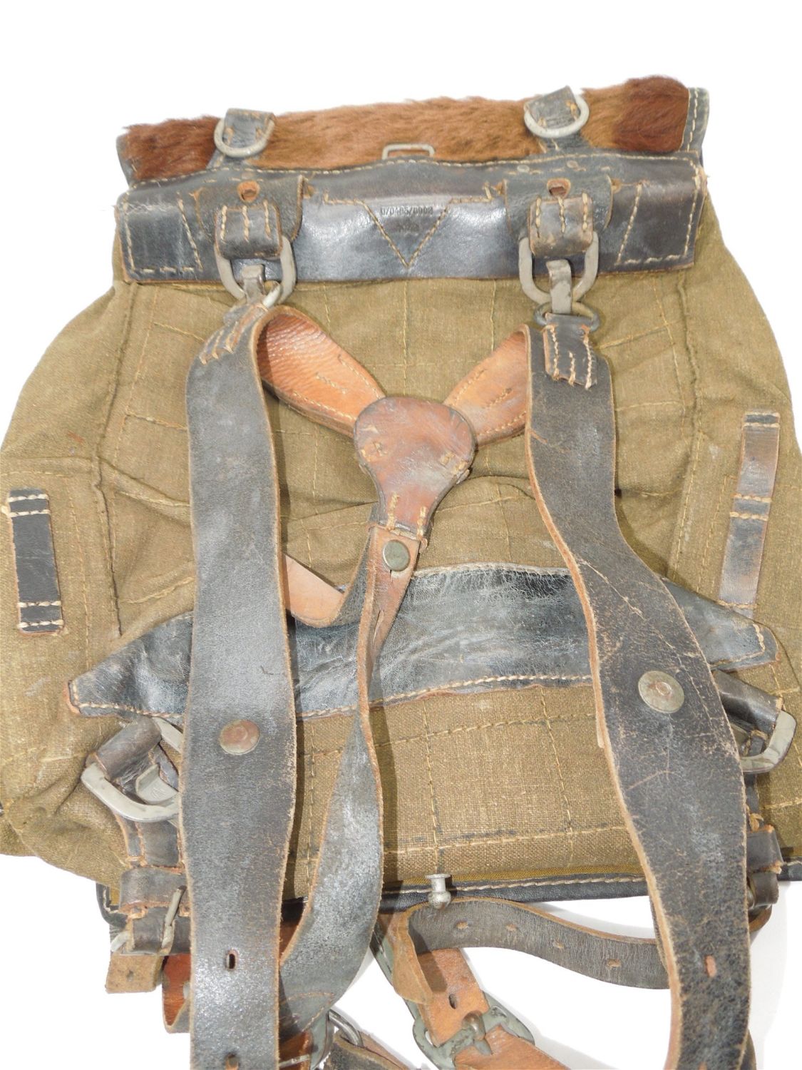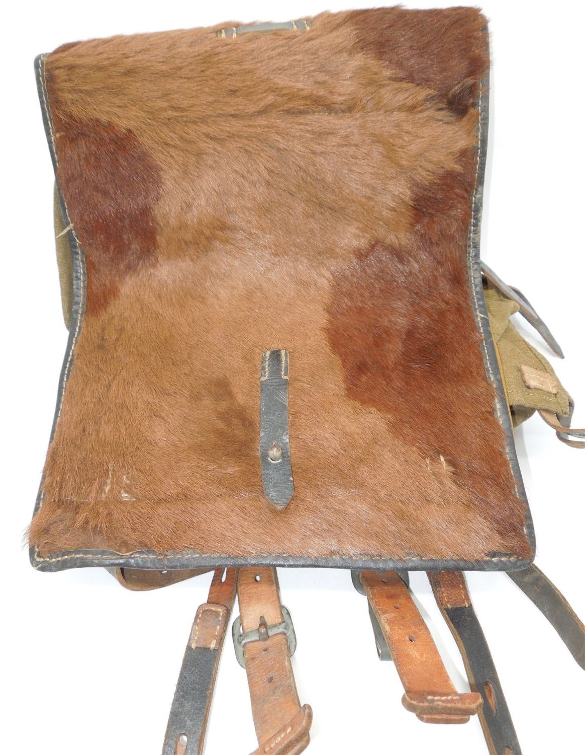 German WWII 1943 backpack is in excellent condition. The item number on the back of the backpack is 0/04B6/002 and it has a fur front cover. Bringback from an infantry Company Commander in the 30th Infantry Division during the war and was in the Battle of the Bulge.