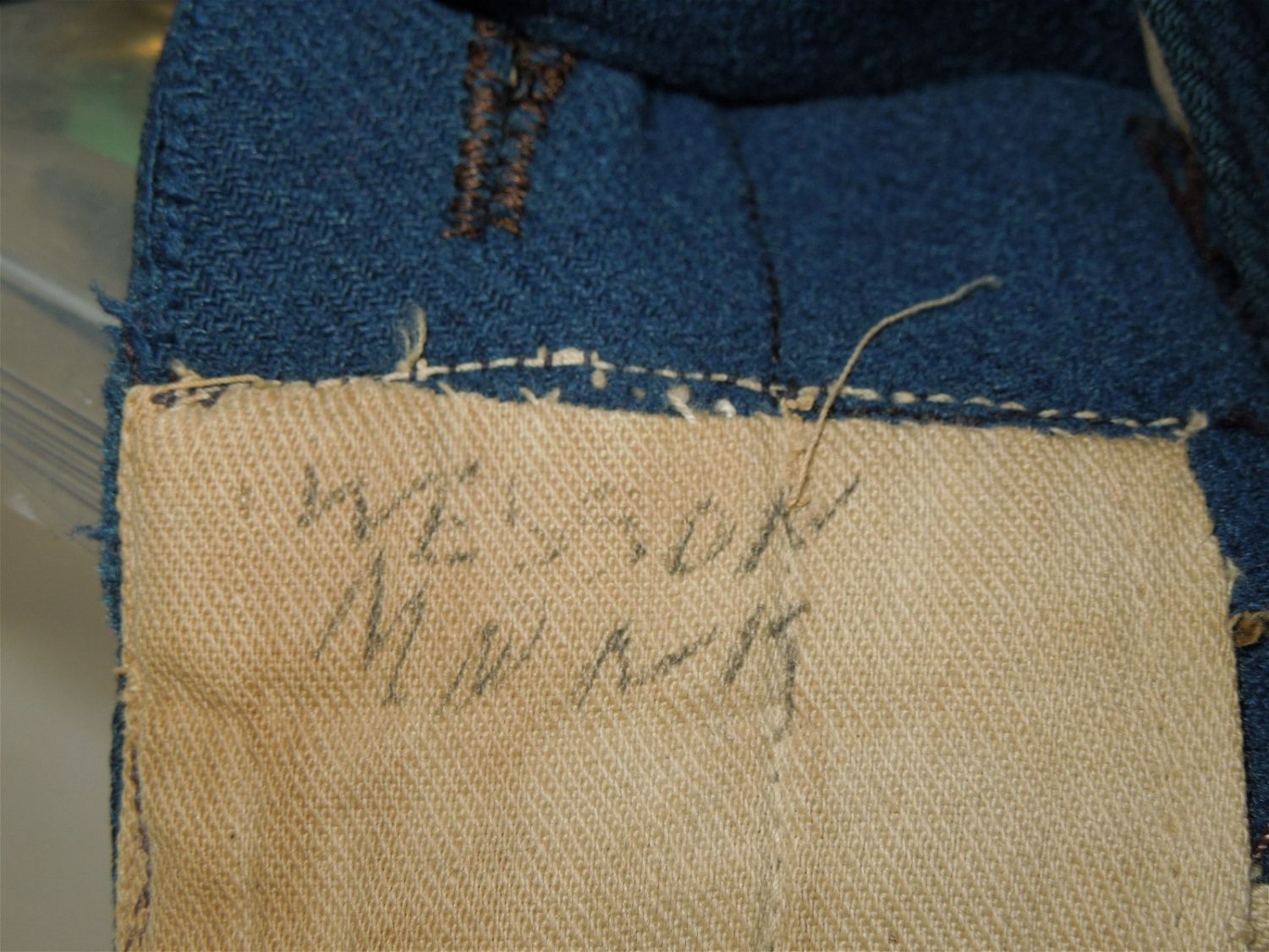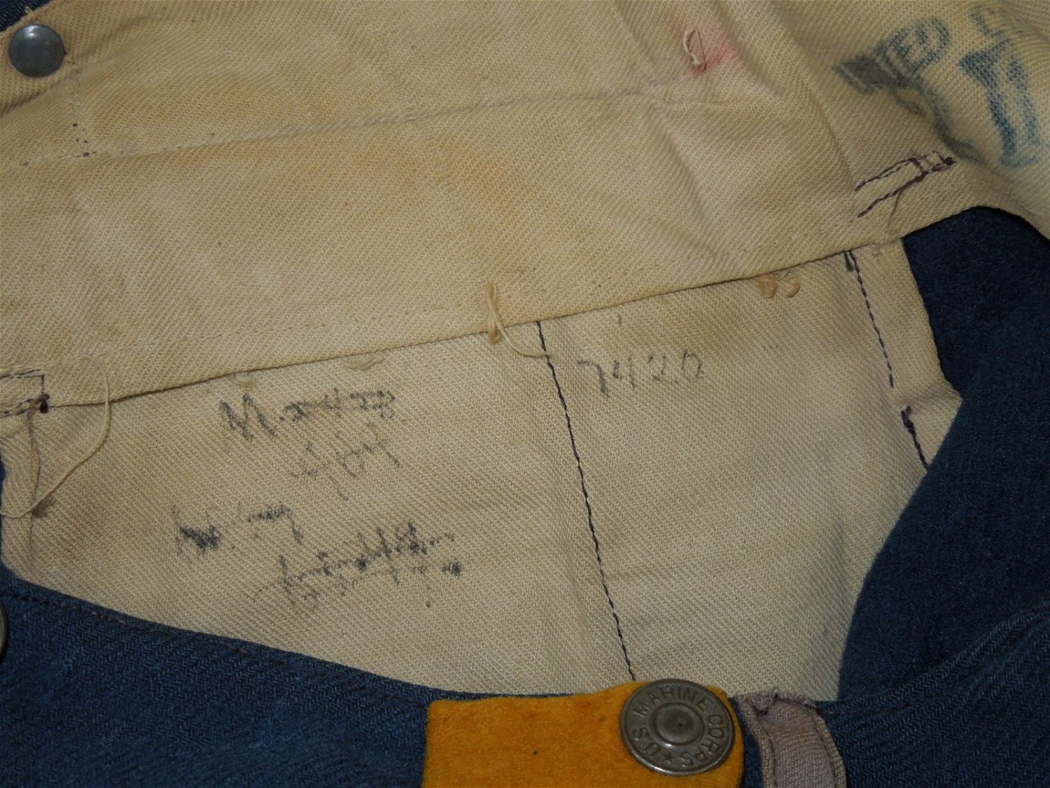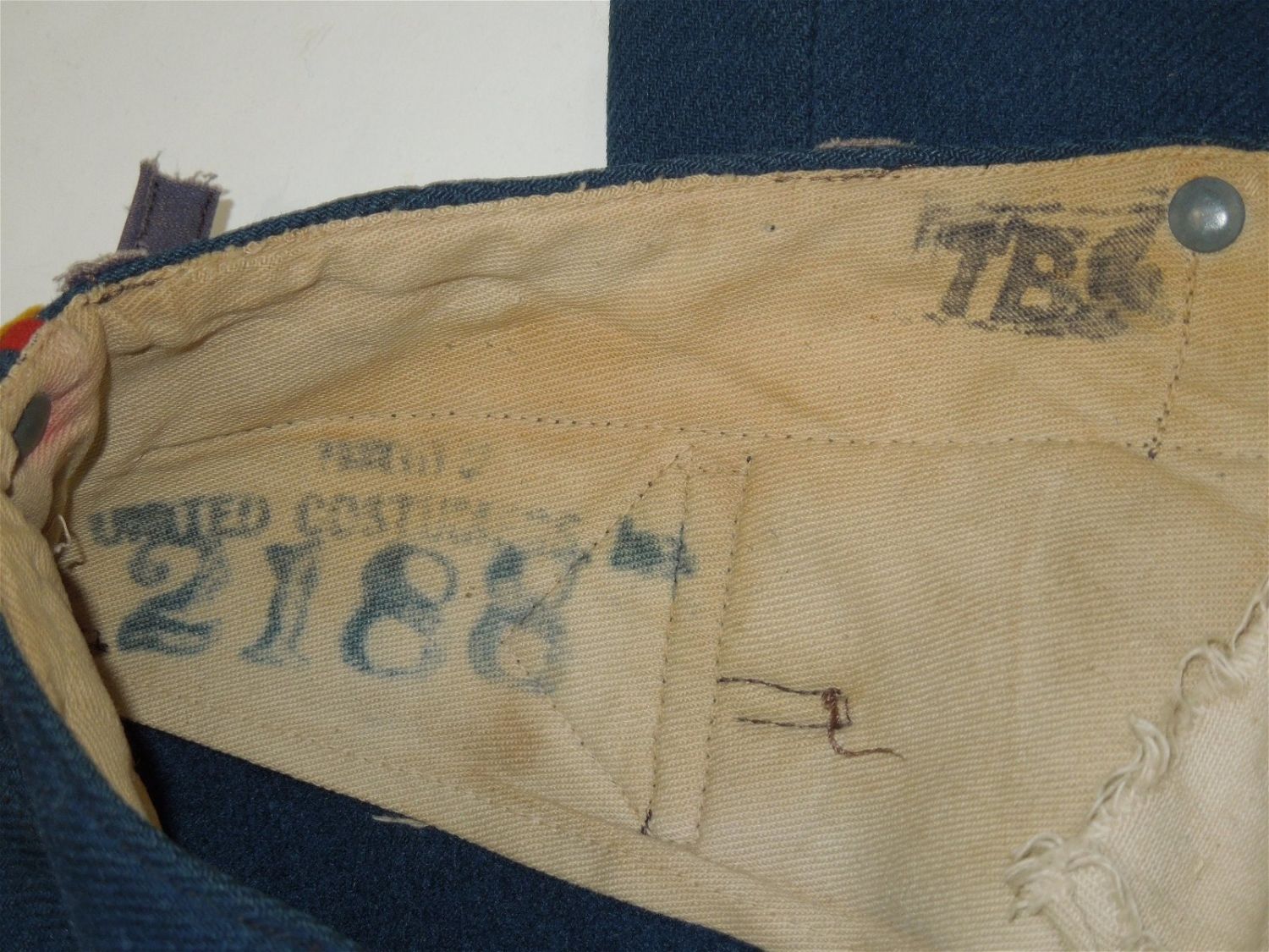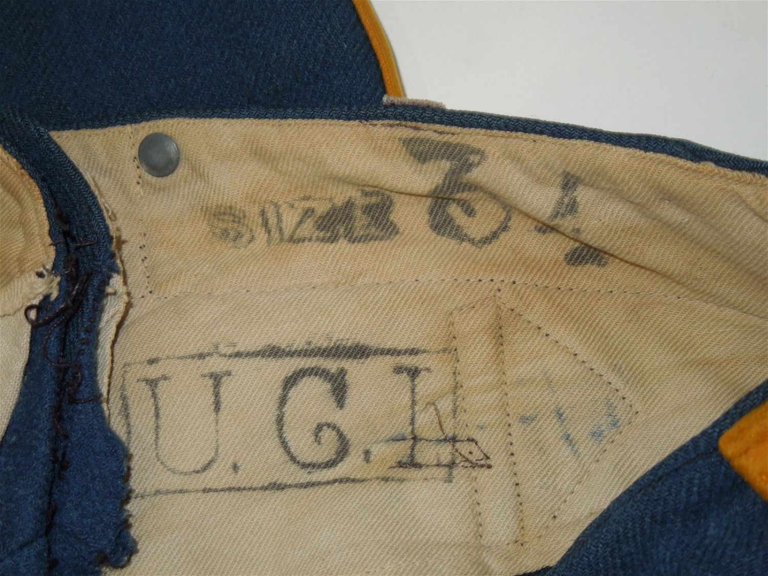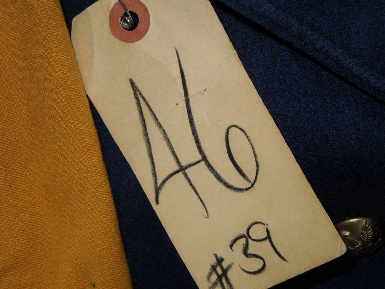 Original lot of provenanced, screen worn, and photo matched Cavalry Officer overcoat, cape, and trousers worn by iconic actor John Wayne during his acting role as Captain Nathan Brittles in the 1949 hit movie She Wore a Yellow Ribbon. This custom made original set bears interior stampings from the movie costuming company, both of which have pinned on paper tags bearing the name John Wayne. A period green tag also notes the alterations needed for Wayne. These items are photo matched to the one he wore during the movie (see digital photos). It should be noted that John Wayne weighed over 200 lbs and stood well over 6 feet tall. This overcoat is marked a size 44, and the pants are also very large, both consistent with his unusually large stature for that time period. This set was acquired directly from a technical advisor who worked as a consultant for the Western Costume Company in California and personally purchased it, as is, from their warehouse many years ago. Of note, the paper tag with the safety pin is consistent with how the company typically labels items used by notable actors and actresses. Two buttons have popped off but are included.