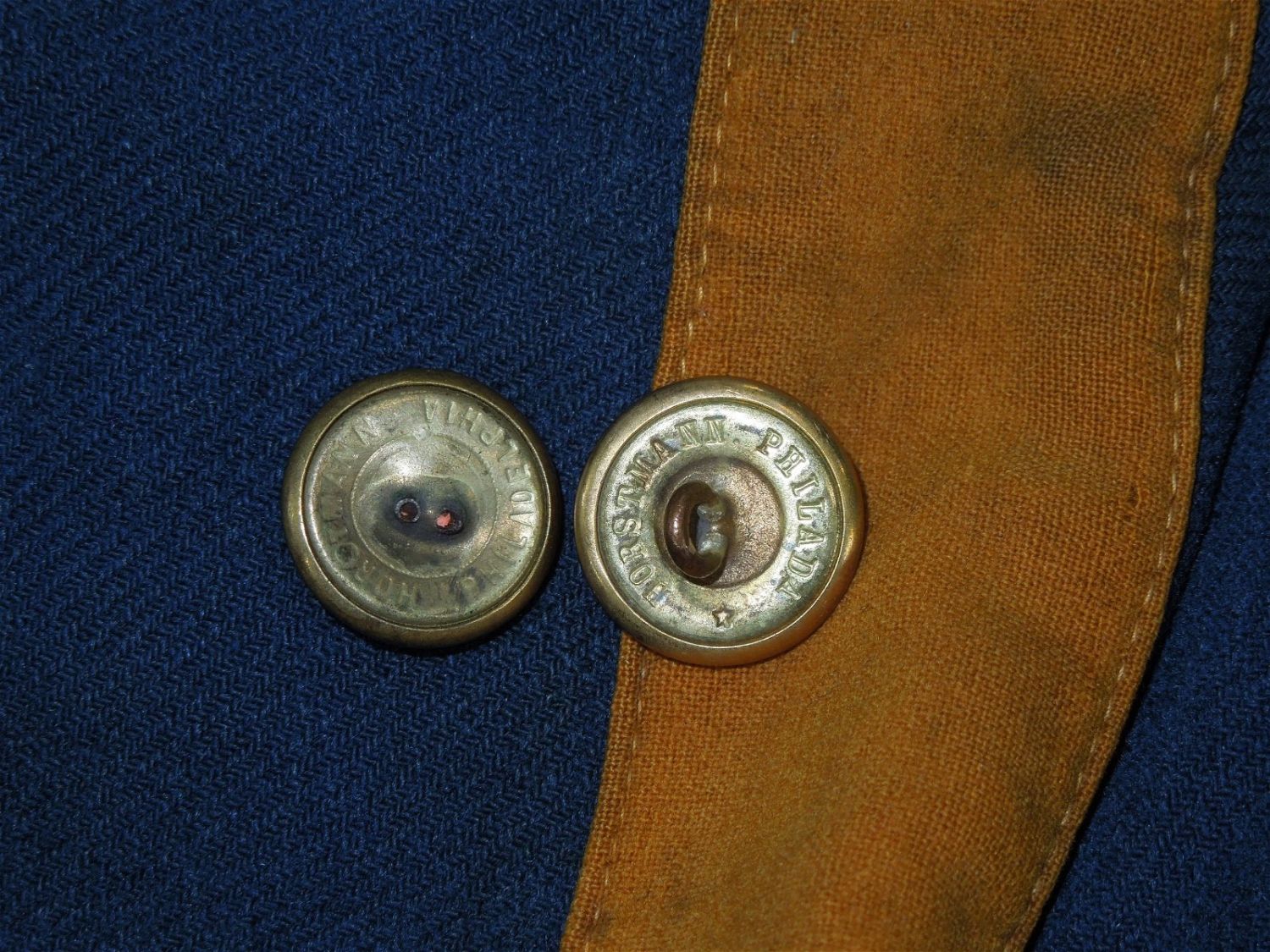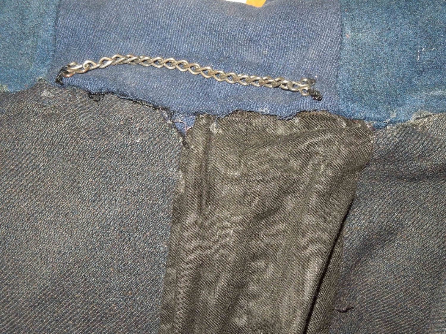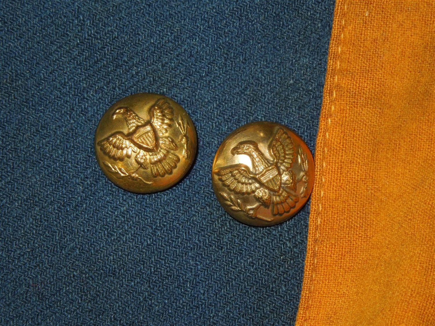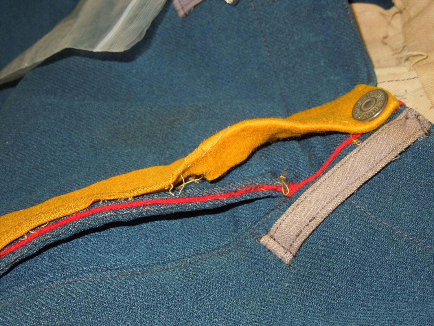 Original lot of provenanced, screen worn, and photo matched Cavalry Officer overcoat, cape, and trousers worn by iconic actor John Wayne during his acting role as Captain Nathan Brittles in the 1949 hit movie She Wore a Yellow Ribbon. This custom made original set bears interior stampings from the movie costuming company, both of which have pinned on paper tags bearing the name John Wayne. A period green tag also notes the alterations needed for Wayne. These items are photo matched to the one he wore during the movie (see digital photos). It should be noted that John Wayne weighed over 200 lbs and stood well over 6 feet tall. This overcoat is marked a size 44, and the pants are also very large, both consistent with his unusually large stature for that time period. This set was acquired directly from a technical advisor who worked as a consultant for the Western Costume Company in California and personally purchased it, as is, from their warehouse many years ago. Of note, the paper tag with the safety pin is consistent with how the company typically labels items used by notable actors and actresses. Two buttons have popped off but are included.