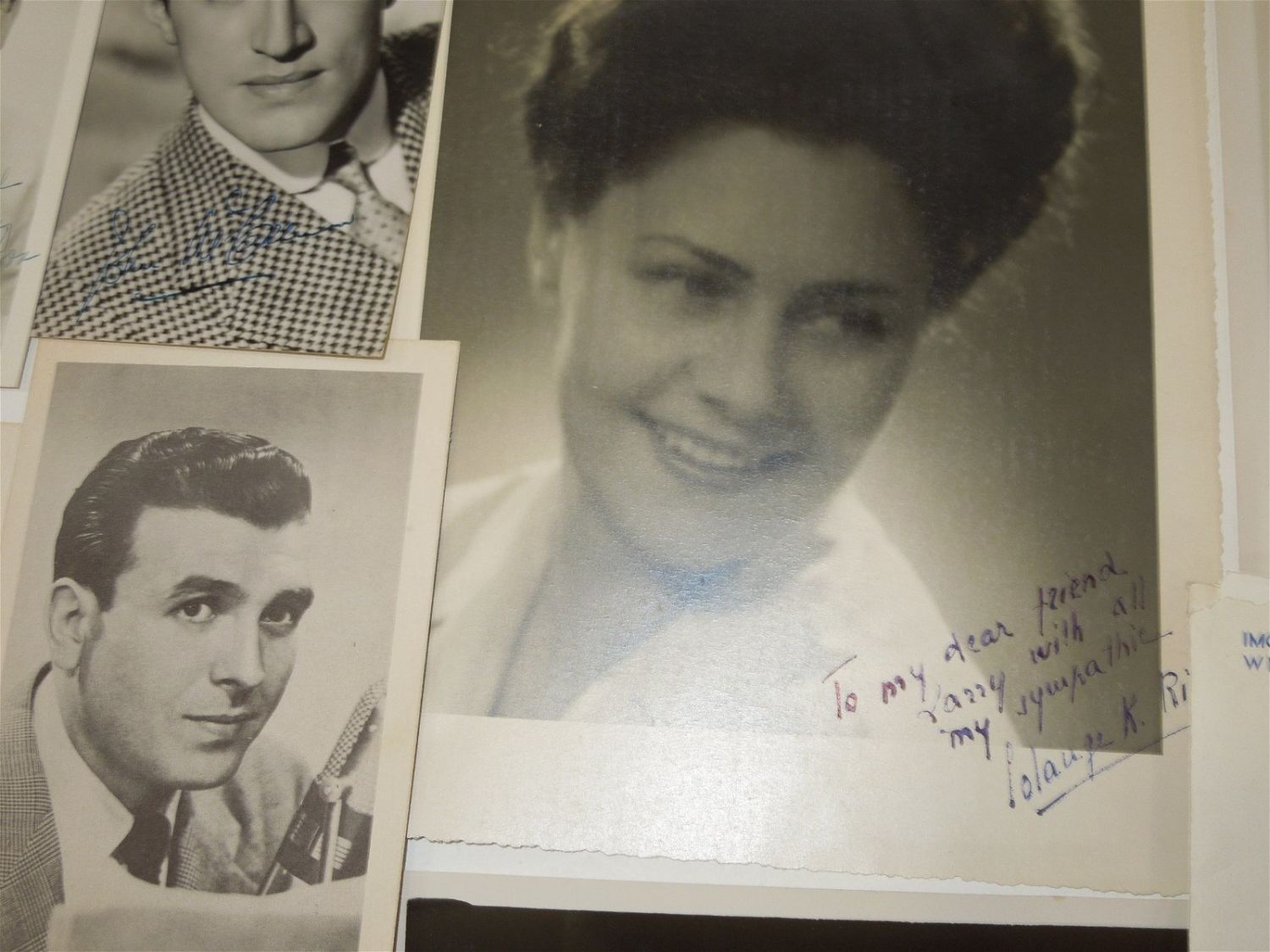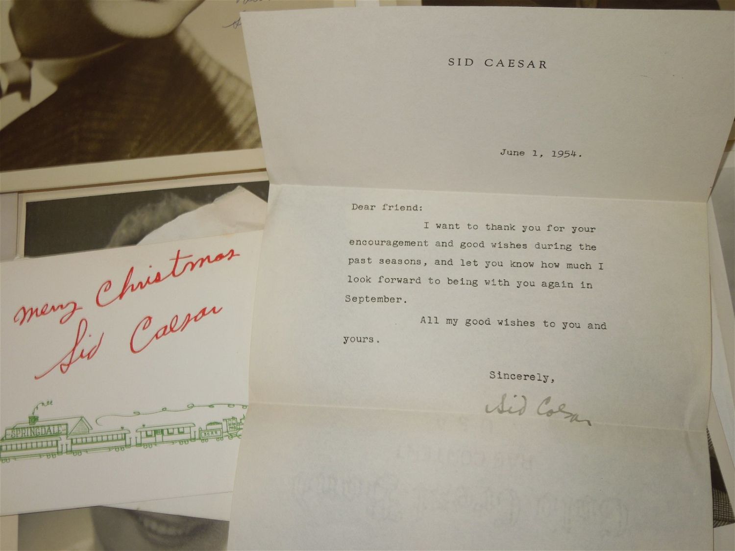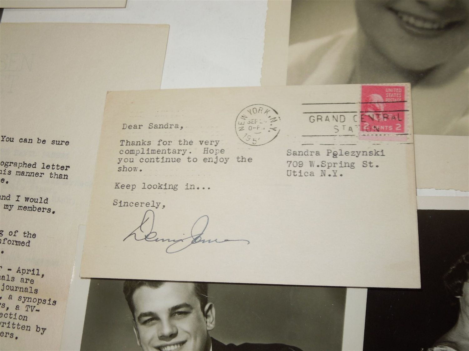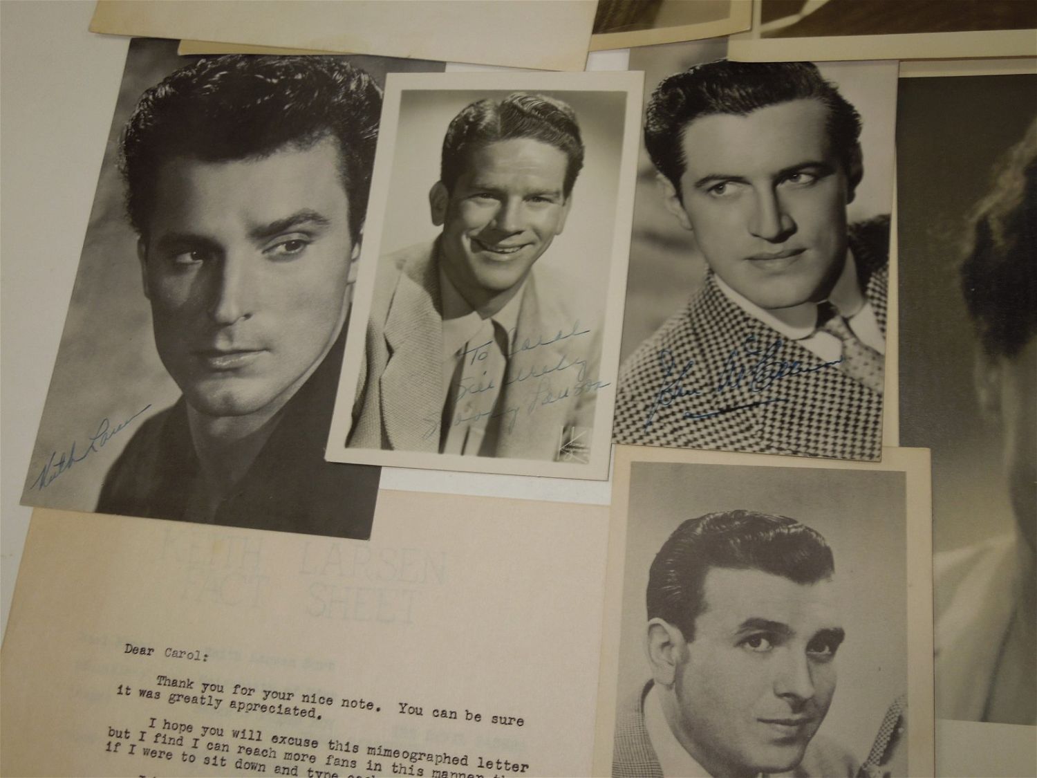 Large lot of Hollywood and other Celebrity autographed photos and letters from the 1950s. All items are original signed and include such namesakes as Judy Johnson, Sid Caesar, Milton Berle, Imogene Coca, Keith Larsen. Some are accompanied by hand signed letters and envelopes from the celebrities.