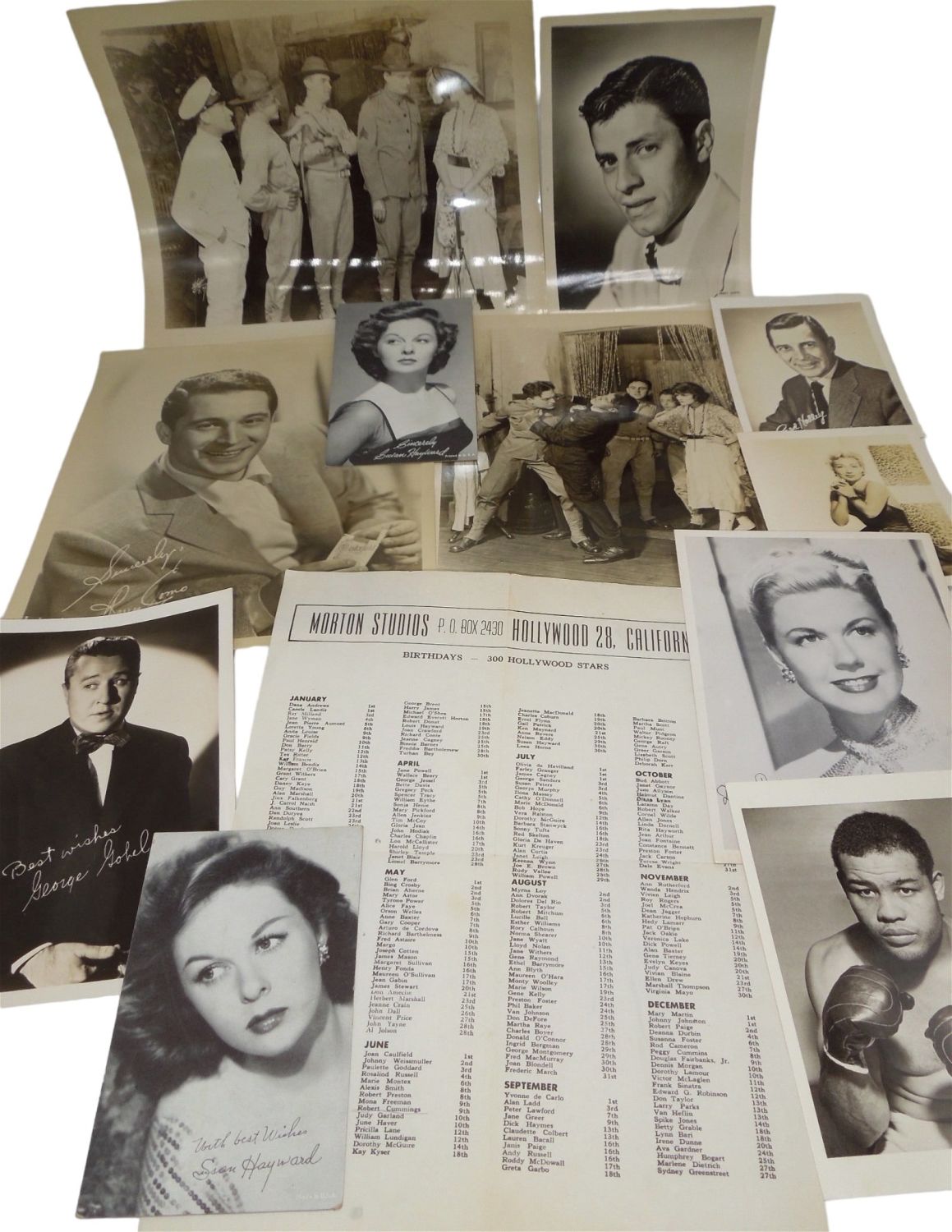 Lot of unsigned celebrity photos and documents, Susan Hayward, and more. Good condition. Condition: See Description for Condition.