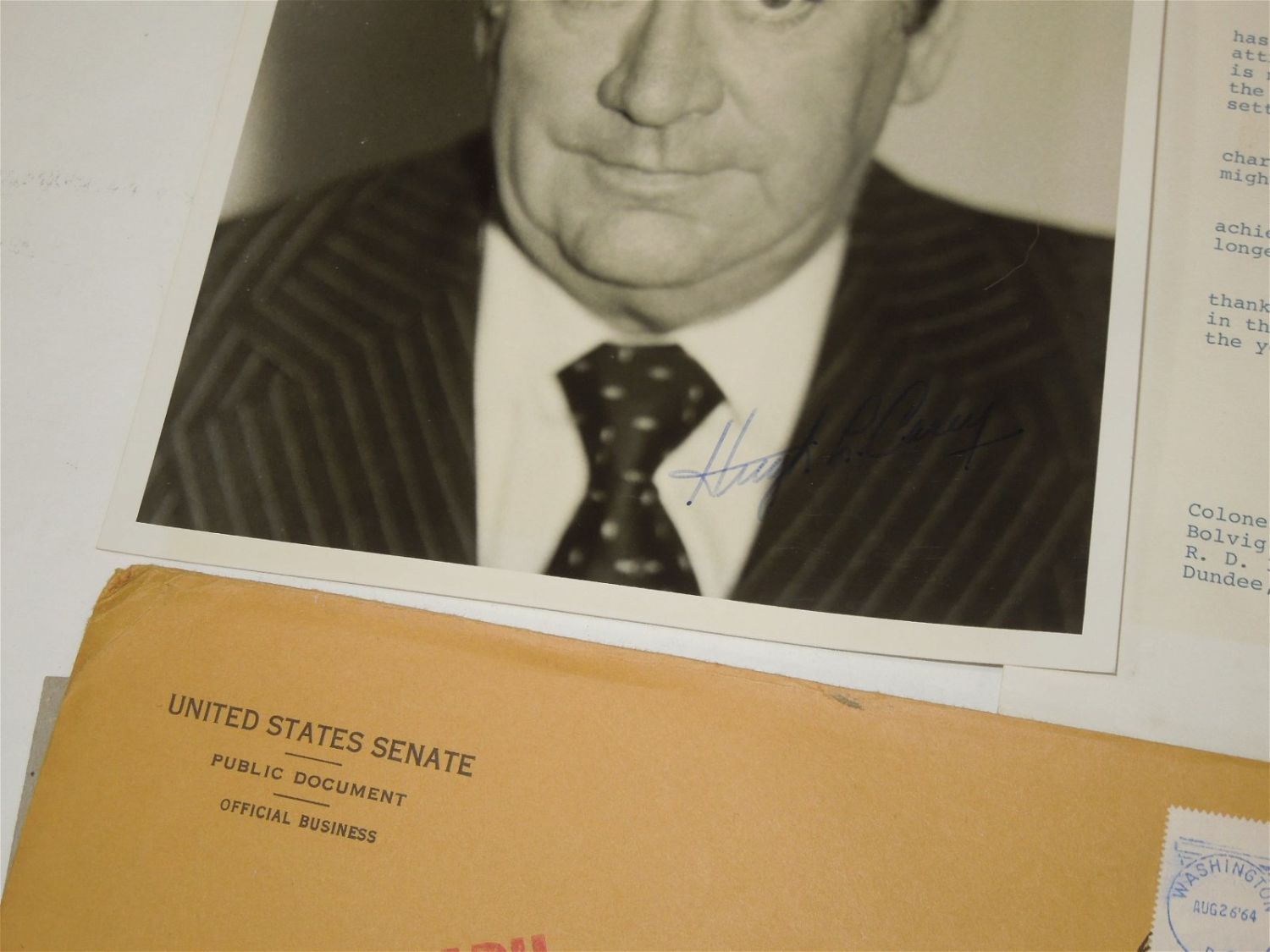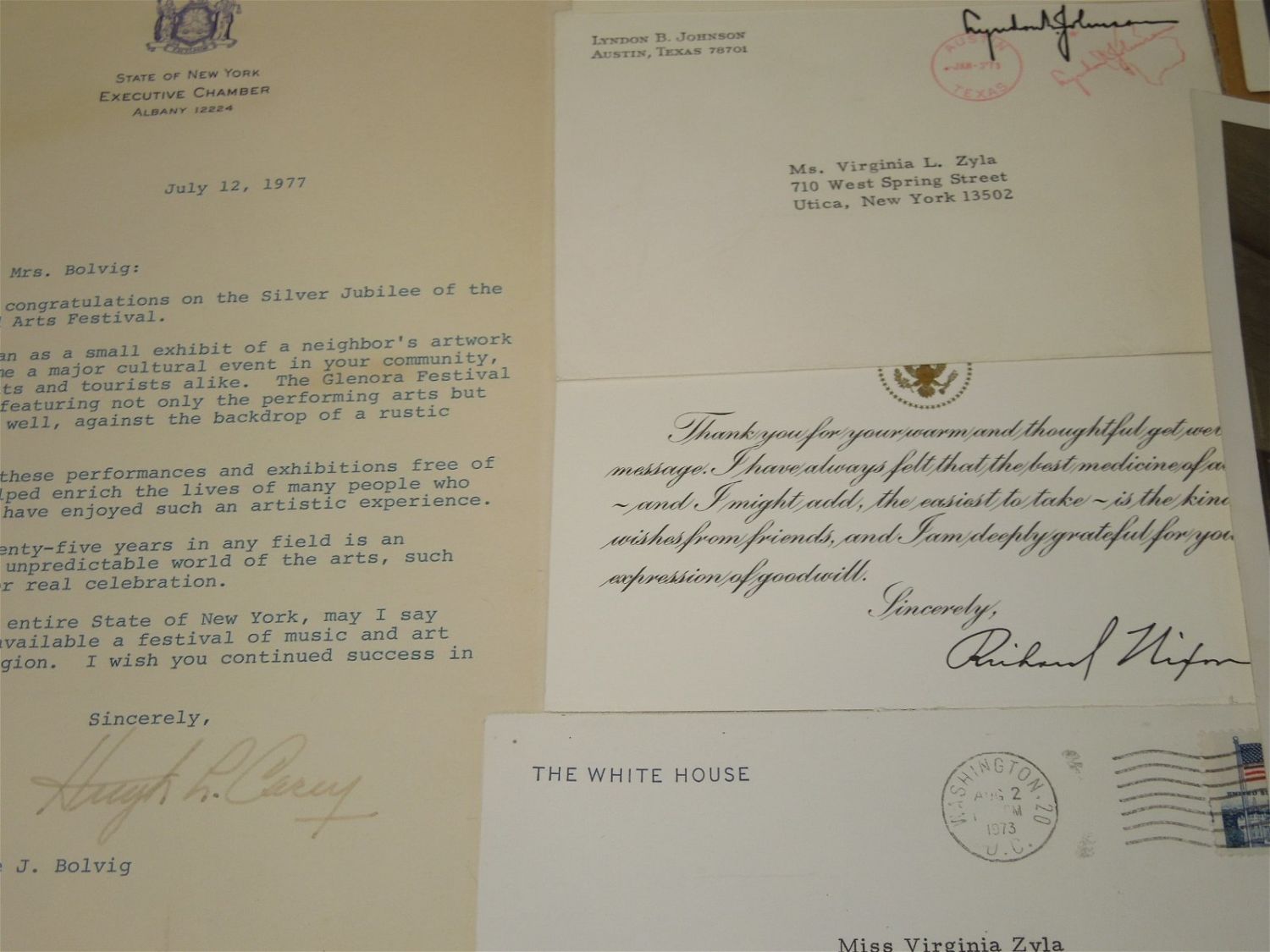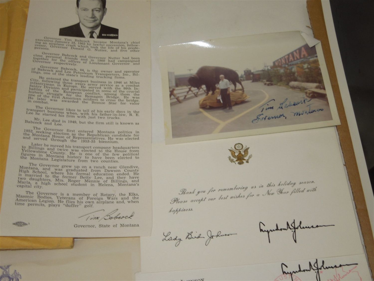 Lot of Political related autographs and paper items to include cards from the President Lyndon Johnson and Richard Nixon White House Administrations, New York Governor Hugh Carey, Montana Governor Tim Babcock, US Presidential Candidate and Senator Barry Goldwater.