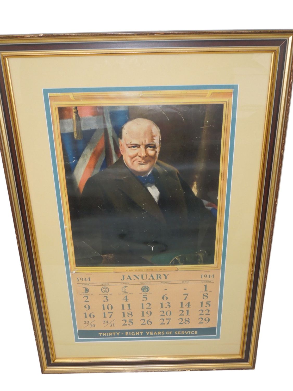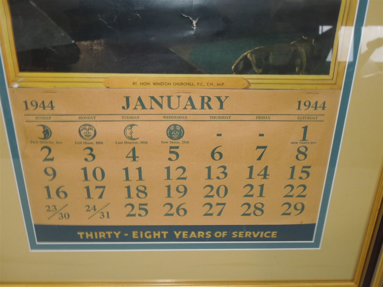 WWII 1942 Prime Minister Winston Churchill Framed Calendar. Approximate size is 29.5 x 20 inches. Professionally matted and framed. Excellent display condition.