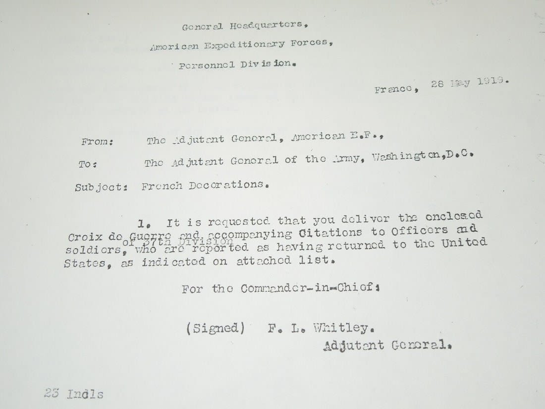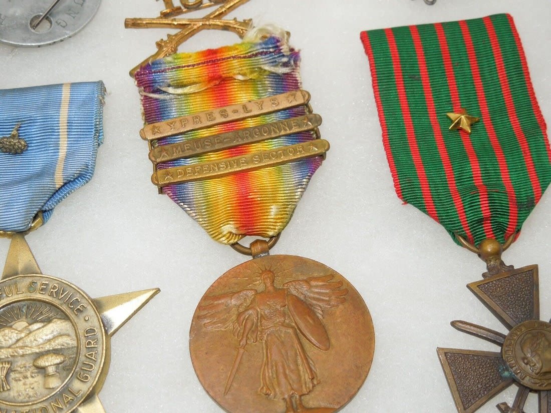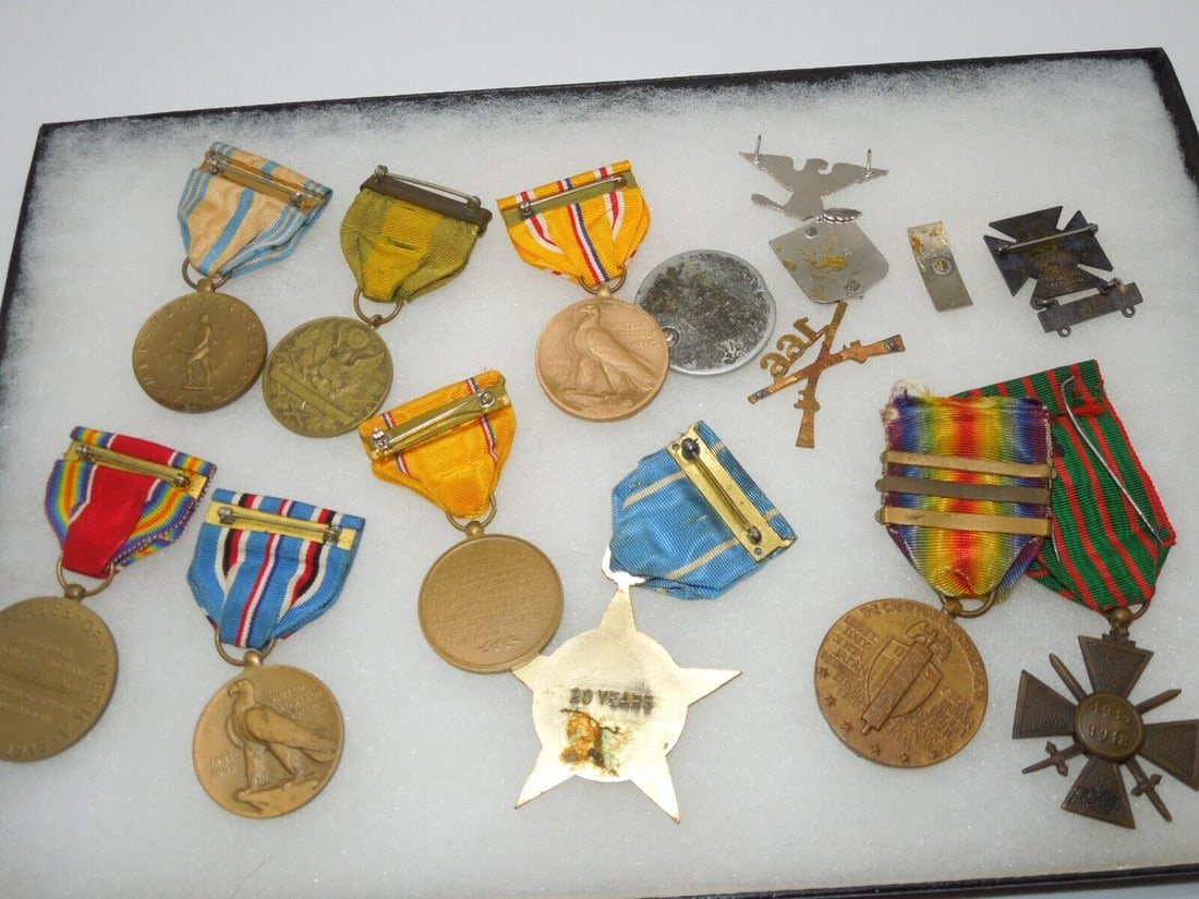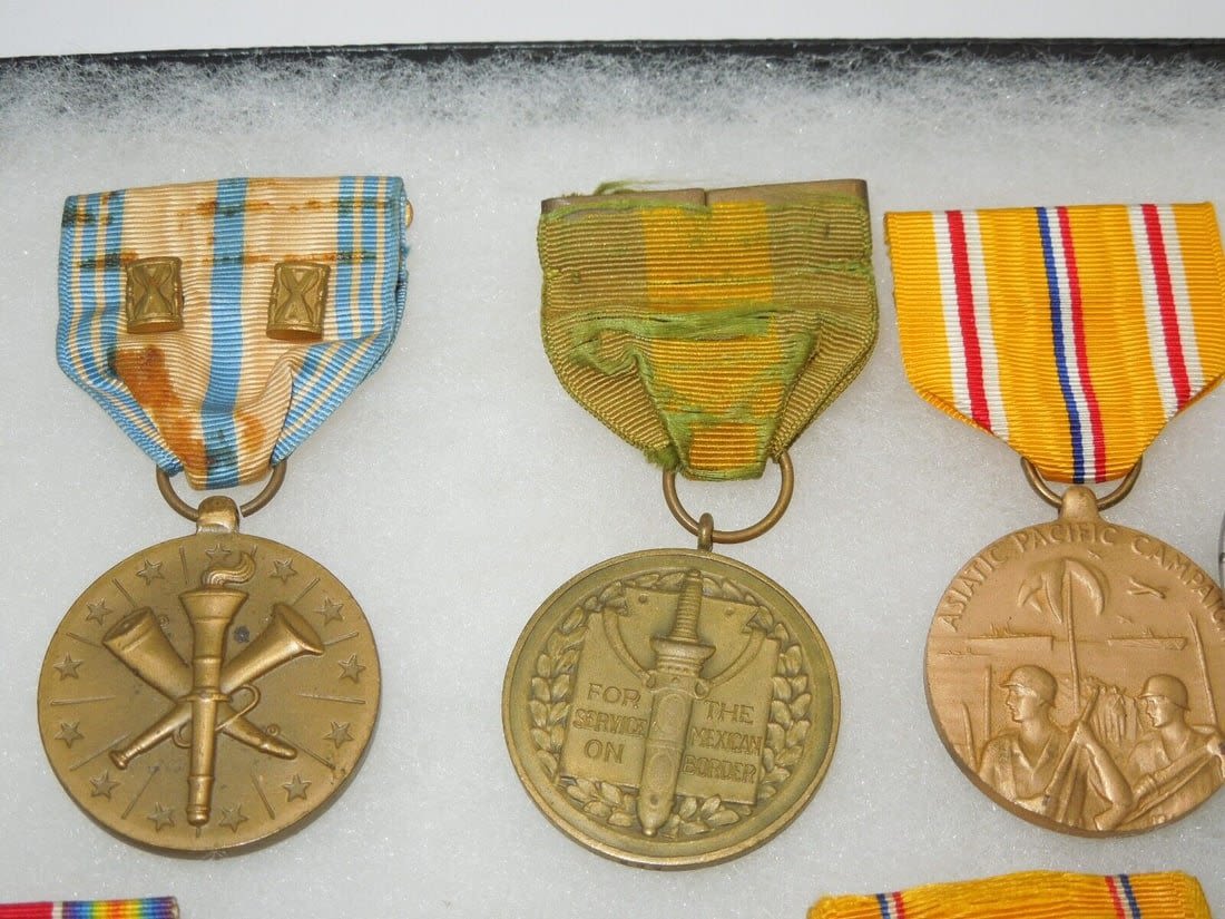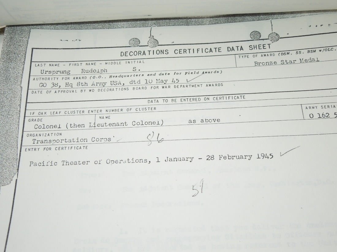 WWI Distinguished Service Cross Recipient Medal / Dog Tag Group of Colonel Rudolph Ursprung, 145th Infantry Regiment, 37th Division. He would go on to serve in the 37th in WWII as a Colonel as well. The Mexican Border Medal (#583) traces to a different Captain. All of the items are well worn, some appeared to have been mounted on a display that didn’t age well. Comes with numerous paper copies of his records. This auction house does not have any other items from him nor do we know where the DSC is located. DSC Citation: The Distinguished Service Cross is presented to Rudulph S. Ursprung, First Lieutenant (Infantry), U.S. Army, for extraordinary heroism in action while serving with 145th Infantry Regiment, 37th Division, A.E.F., near Eyne, Belgium, November 1, 1918. Seeing a wounded soldier lying 150 yards in front of the line, after his company had withdrawn to a more secure position, Lieutenant Ursprung crawled through heavy fire and administered first aid to him. He then picked up the wounded man, carried him across the open, wading a canal through water waist deep, and succeeded in taking him to a place of safety. The display case does not come with this group.