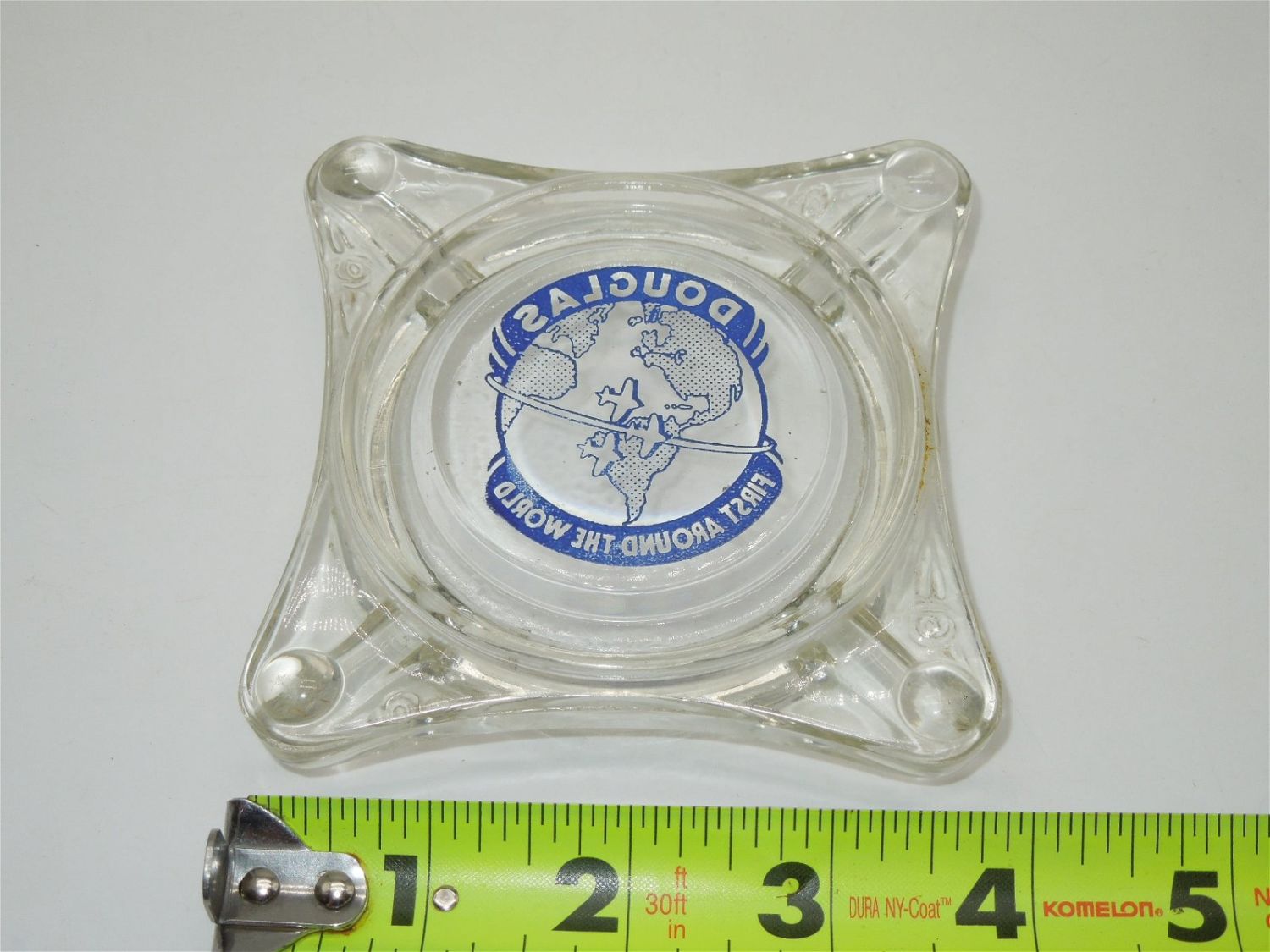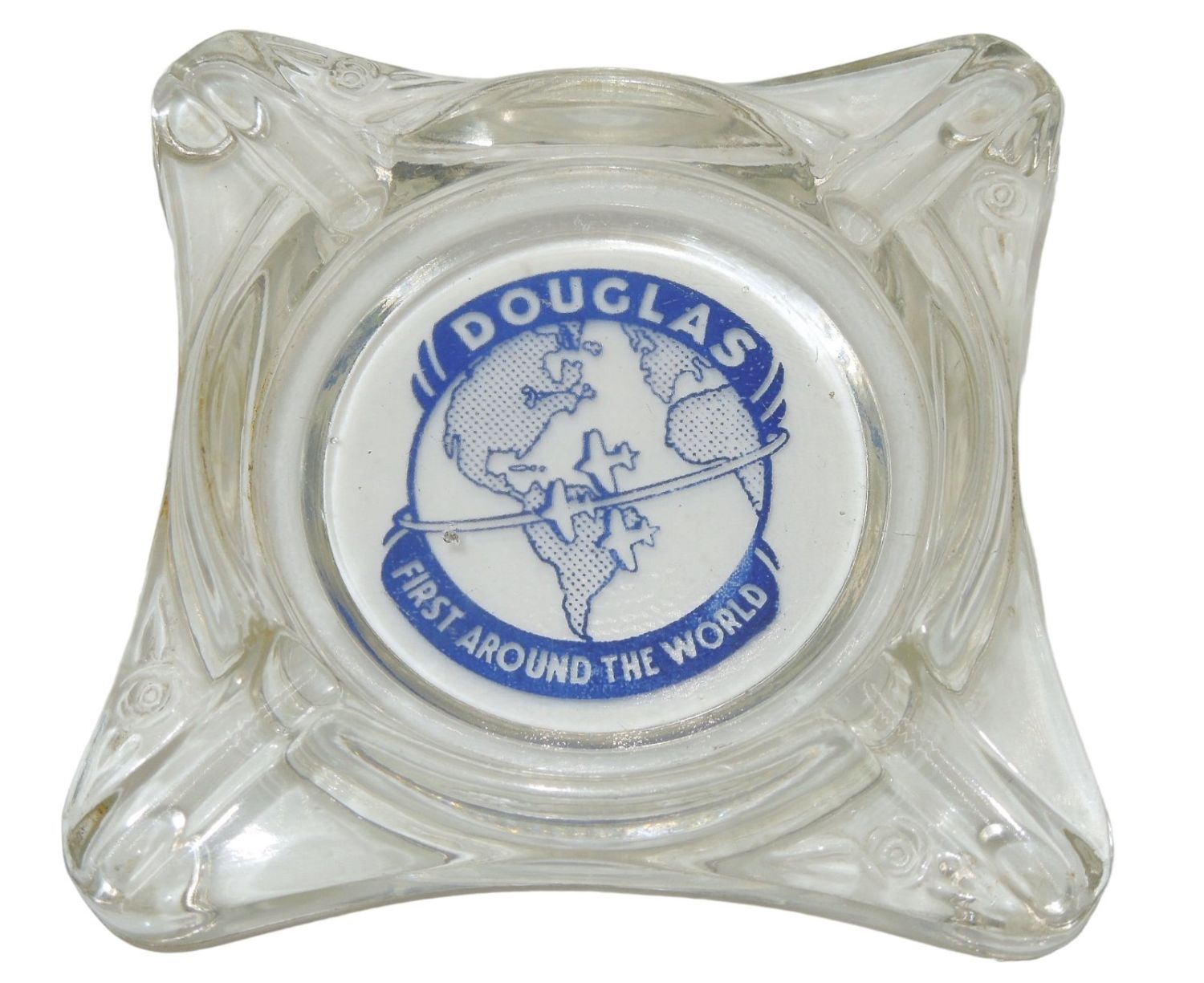 1930s Douglas Aircraft Company Ashtray. First Around The World. Approximate size is 4 x 4 inches. Nice condition for its age.