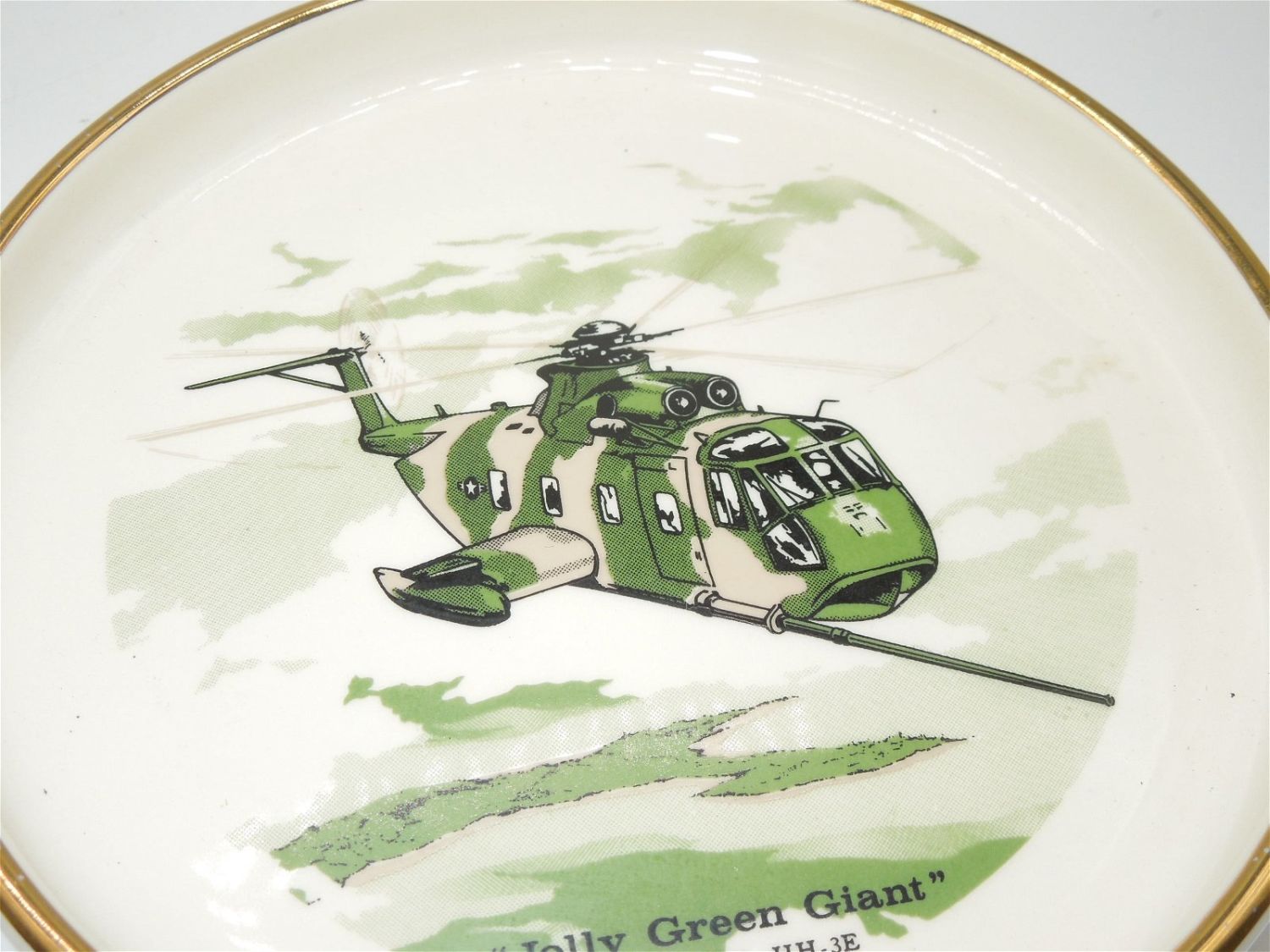 WWII British & US Vietnam Aviation Plates Dishes. You will receive the following (2) pieces: A RAF dish, There’ll Always Be An England, produced by Sutherland China. Made in England. Also, a dish titled Jolly Green Giant Sikorsky HH-3E. Both pieces are in good condition.