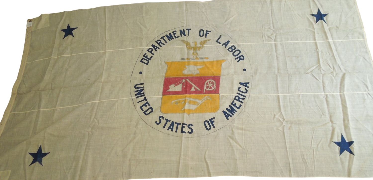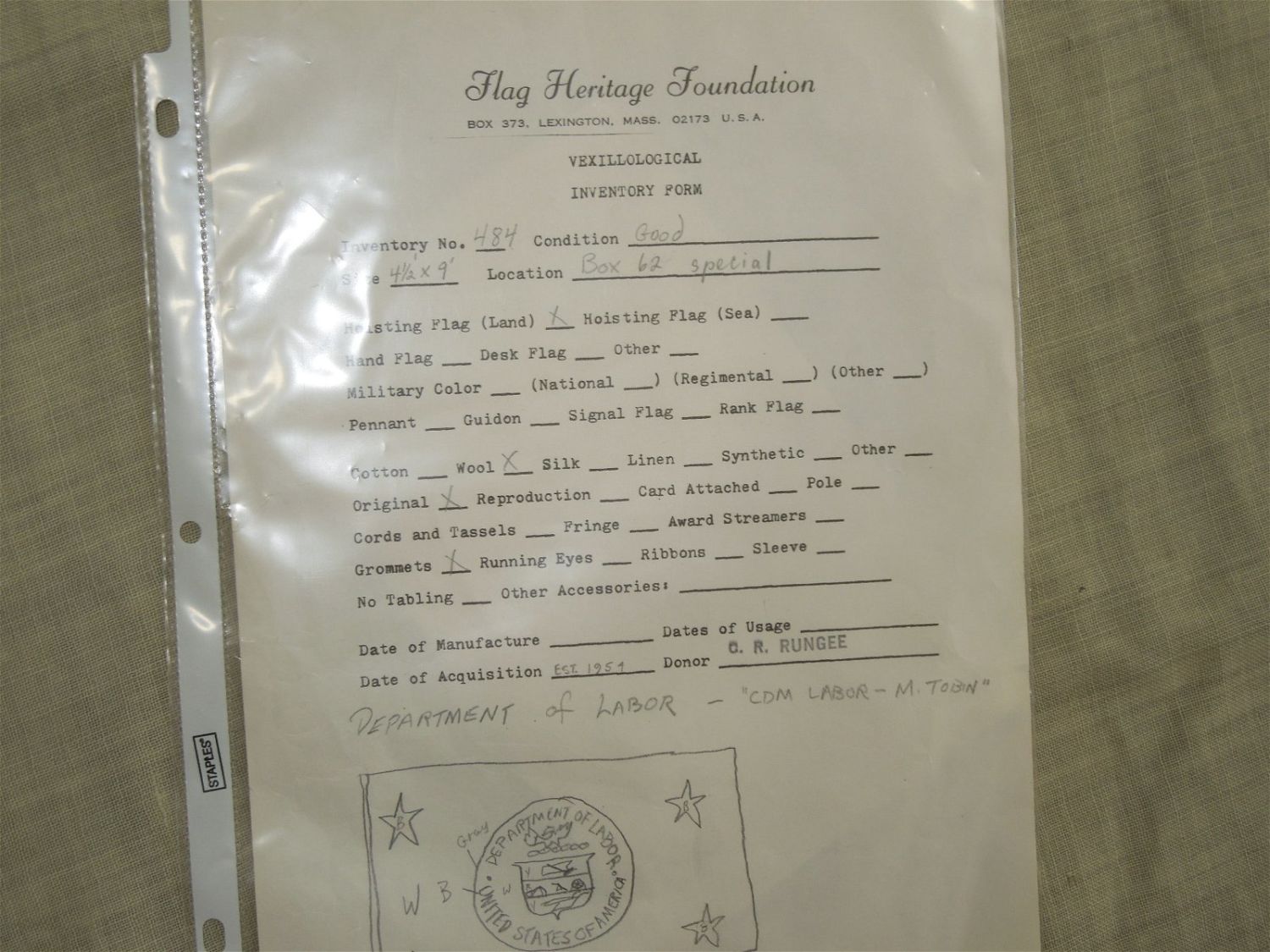 Original Dr. Clarence Rungee collection flag. Measures 4 feet 6 inches by 9 feet. Well used condition. With inventory sheet.