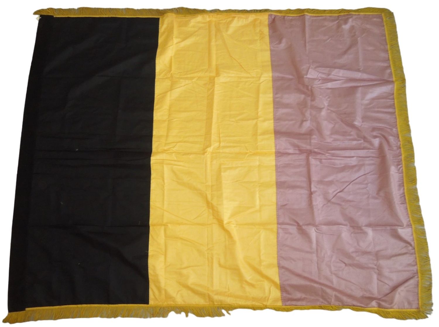 Original silk flag of Germany. Good condition with gold fringe. Measures 5 feet 5 inches by 4 feet 5 inches. Good condition with minor soiling and fading from age.