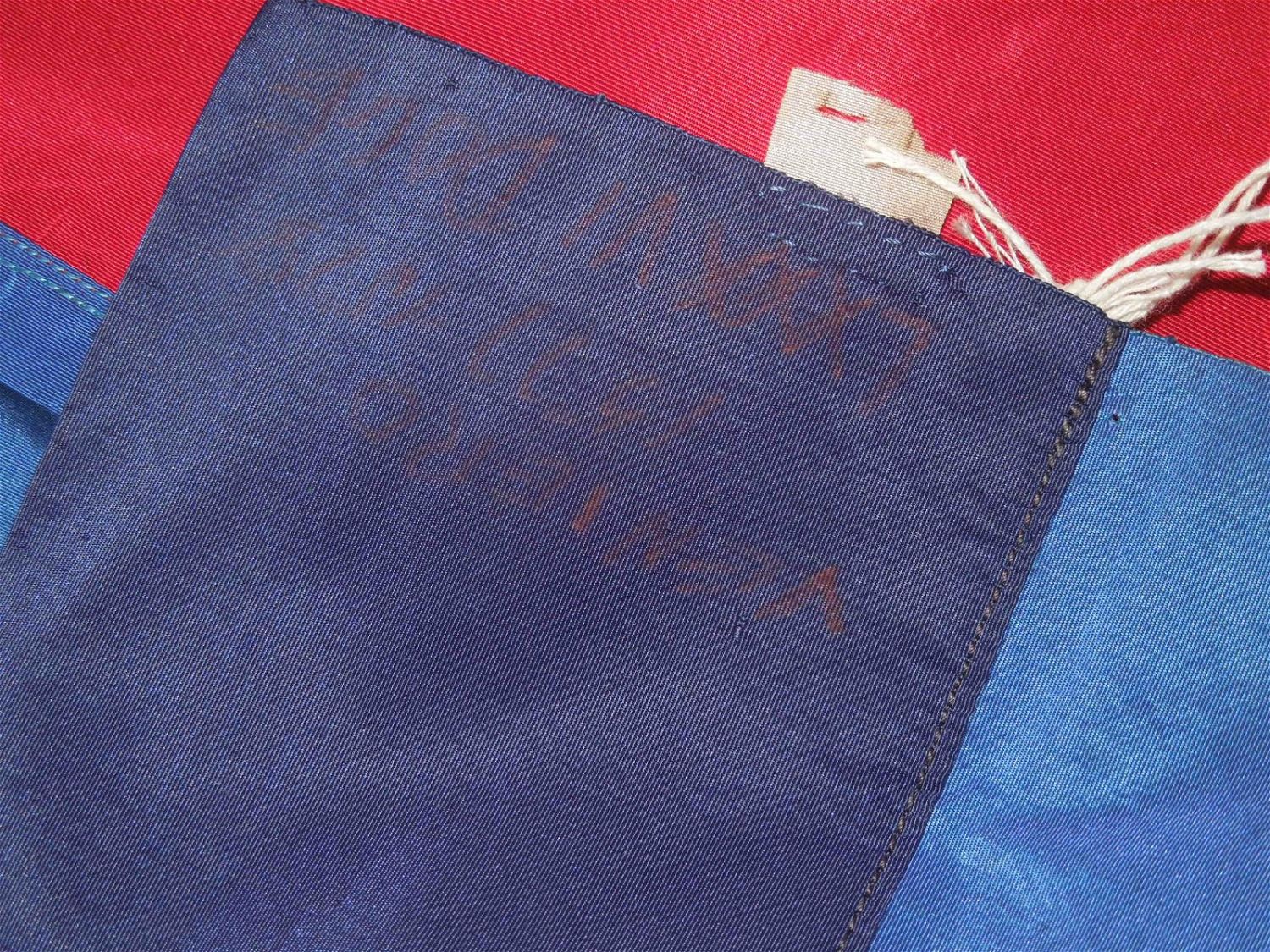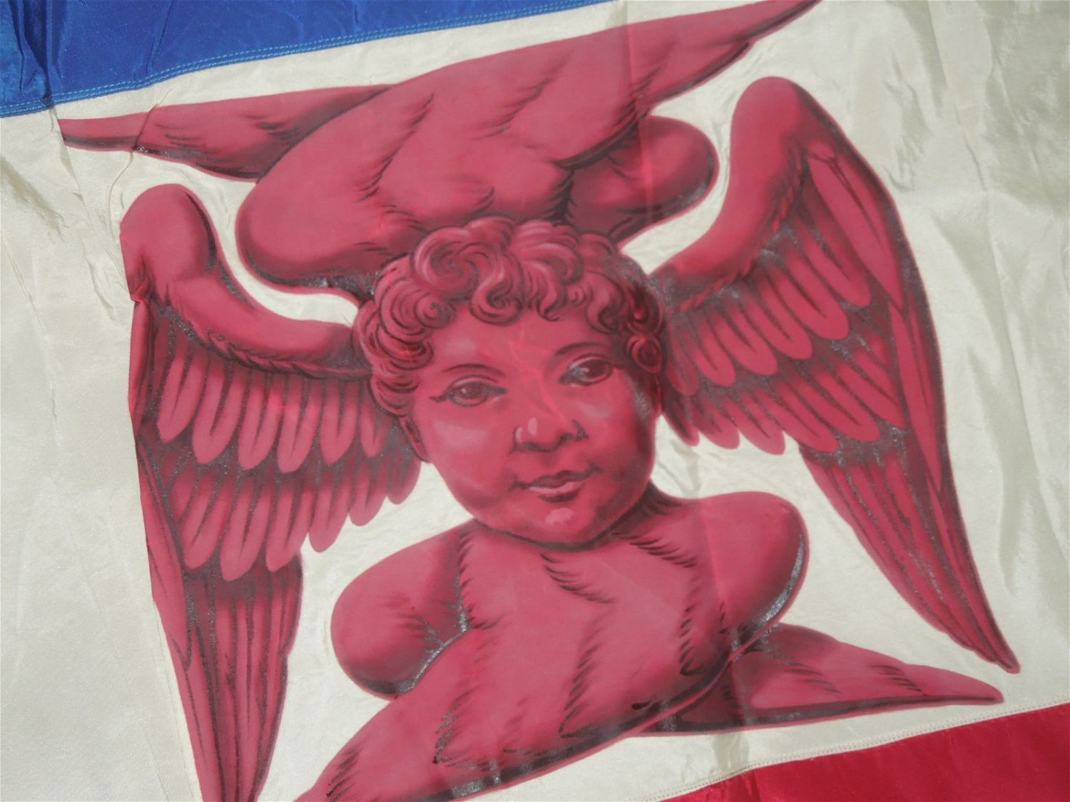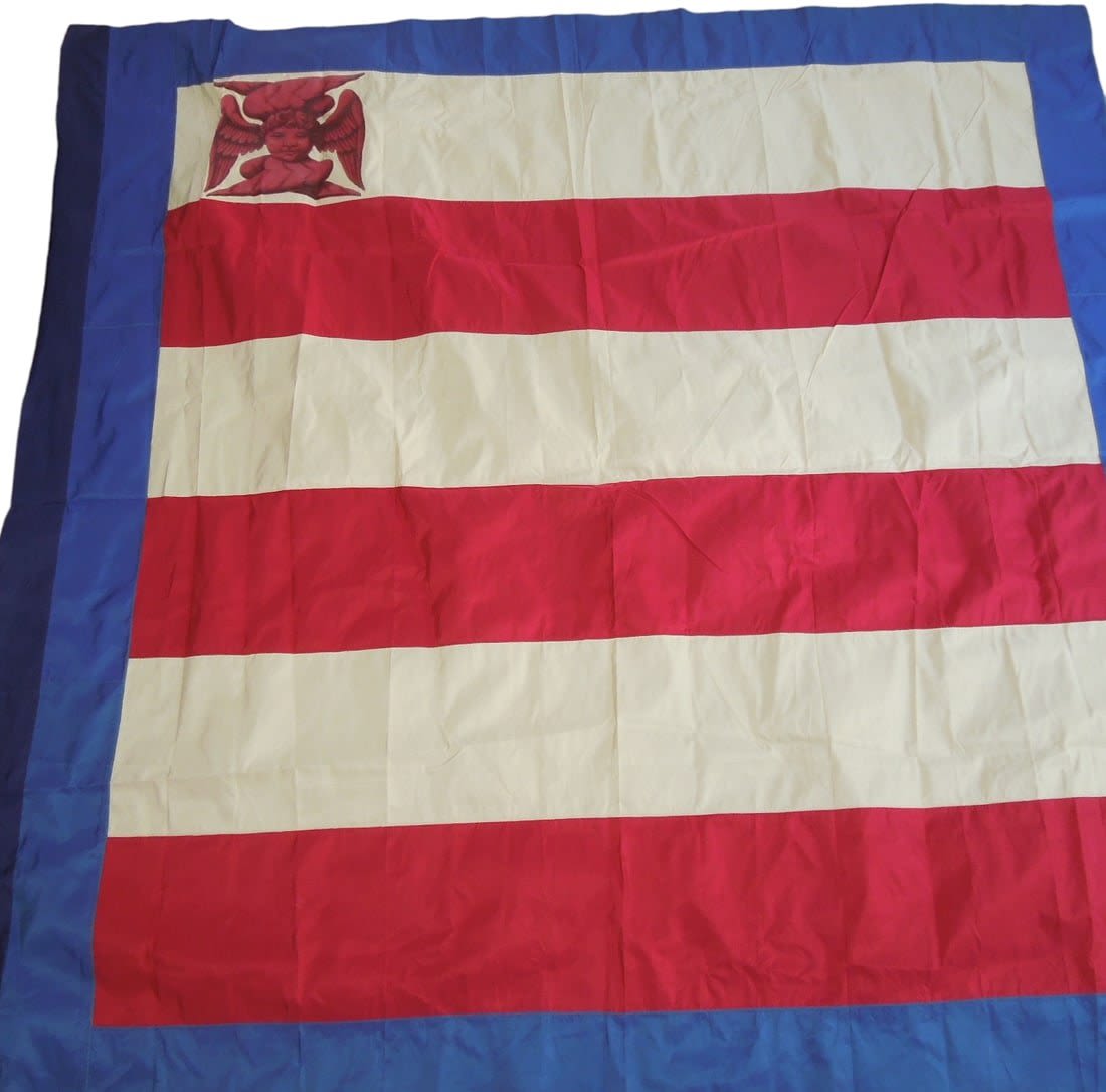 Original silk flag from the Rodman Wanamaker collection (circa 1903 – 1928) measuring 71 x 73 inches in size, made in Great Britain, Good, used condition.
