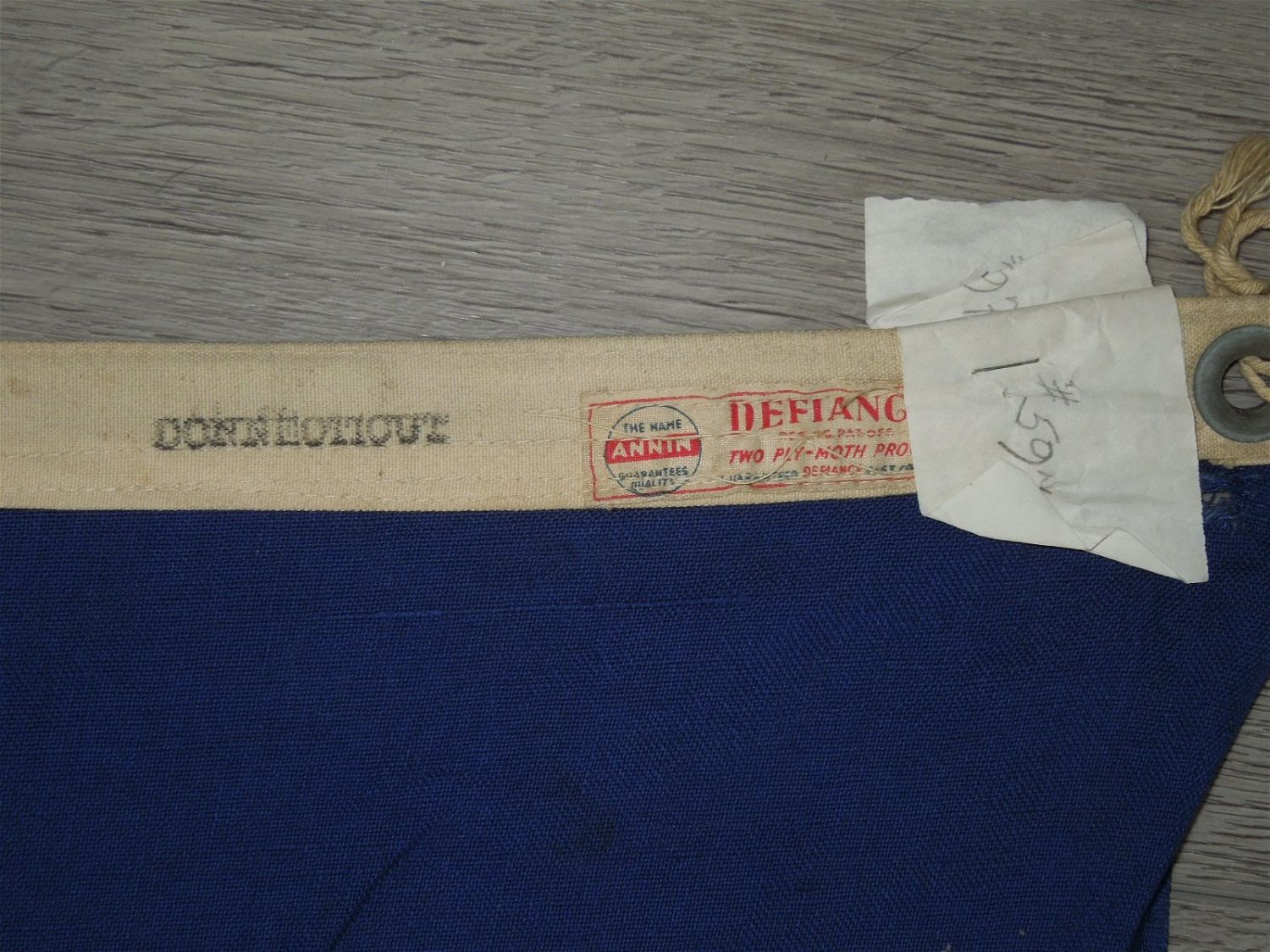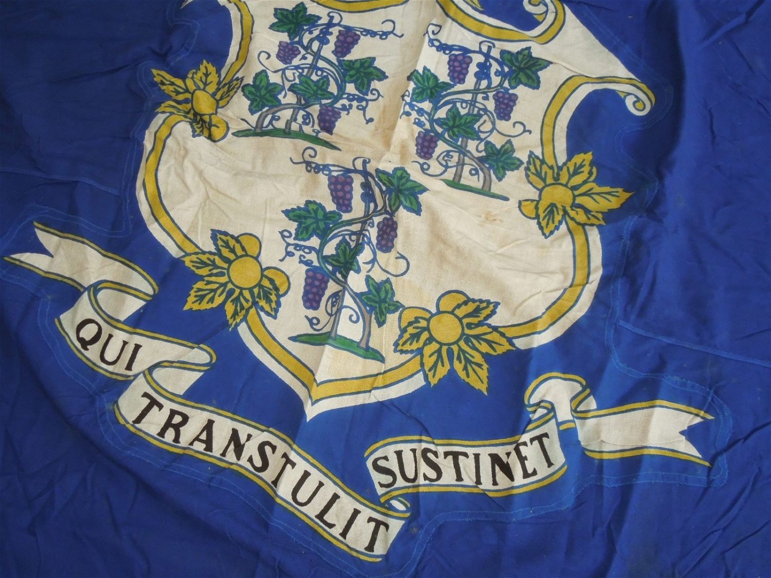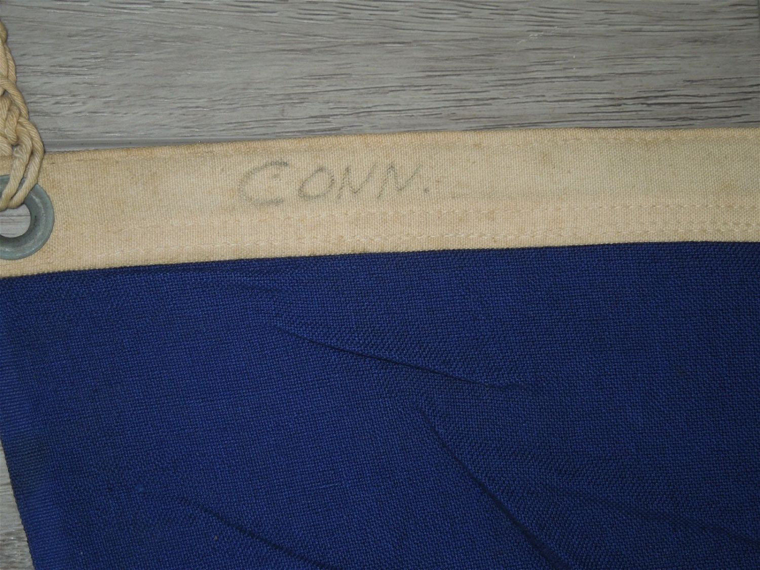 WWII cotton flag measuring 5 x 8 feet, in well used condiiton, accompanied by a letter to Dr. Clarence Rungee from the state transmitting the flag.