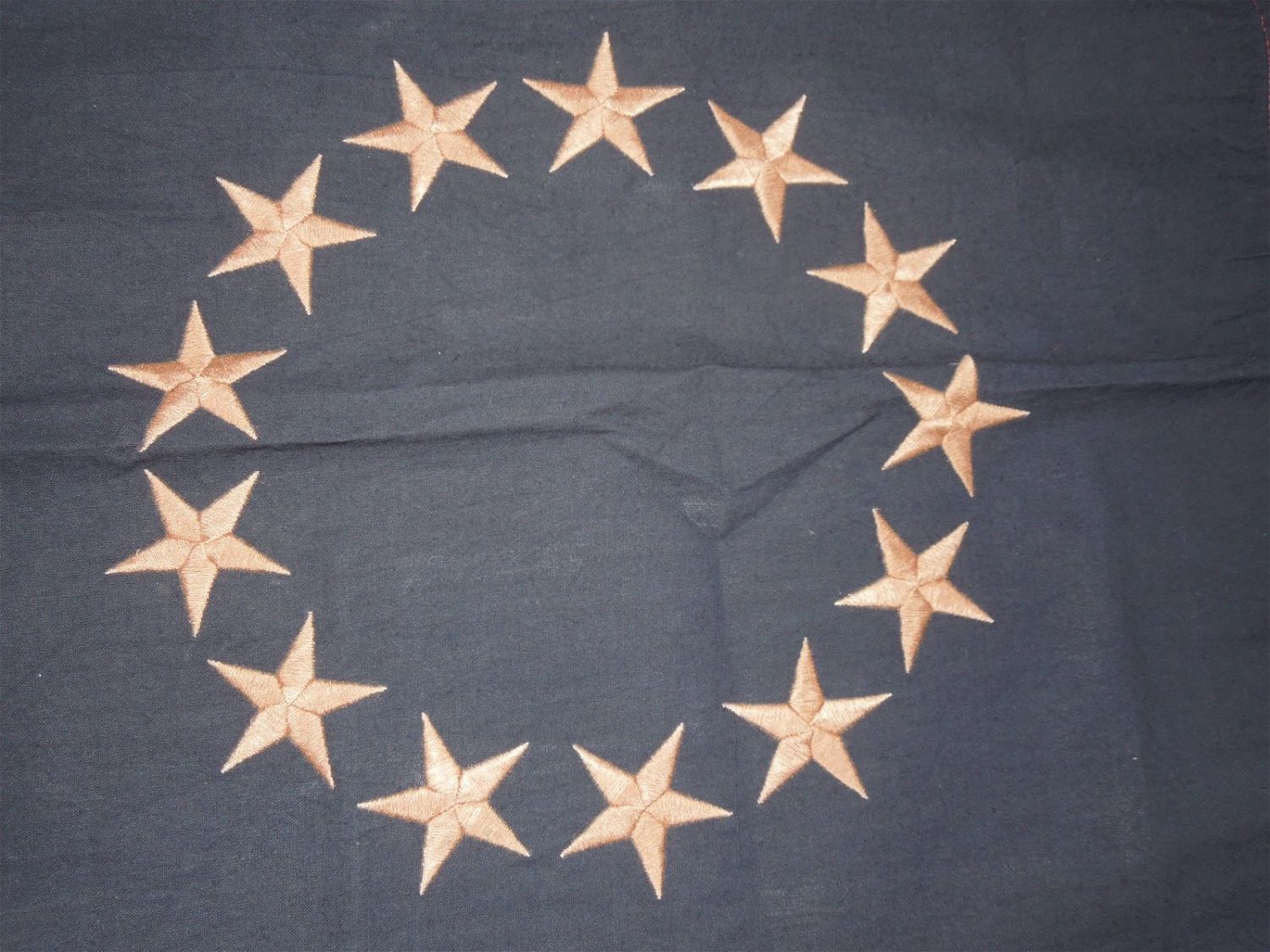 Good condition with embroidered stars. Measures 6 feet 4 inches by 1 feet 5 inches. Appears to be of more recent manufacture.