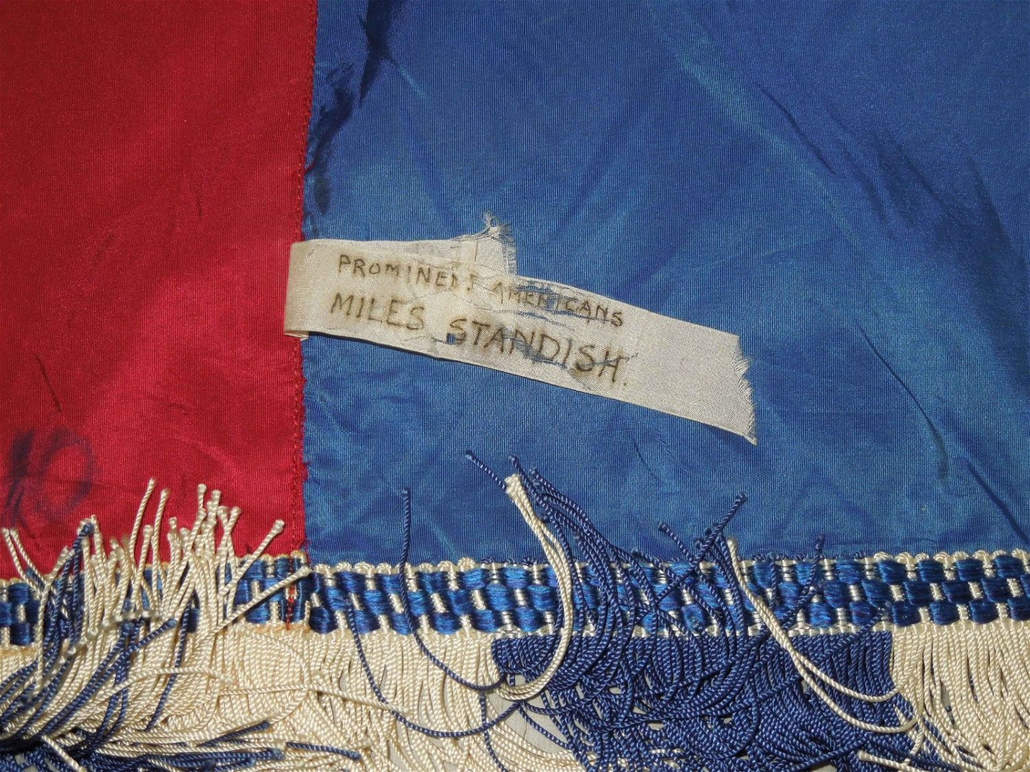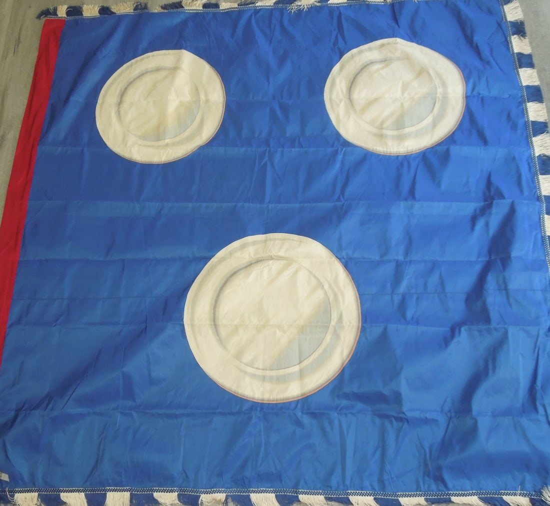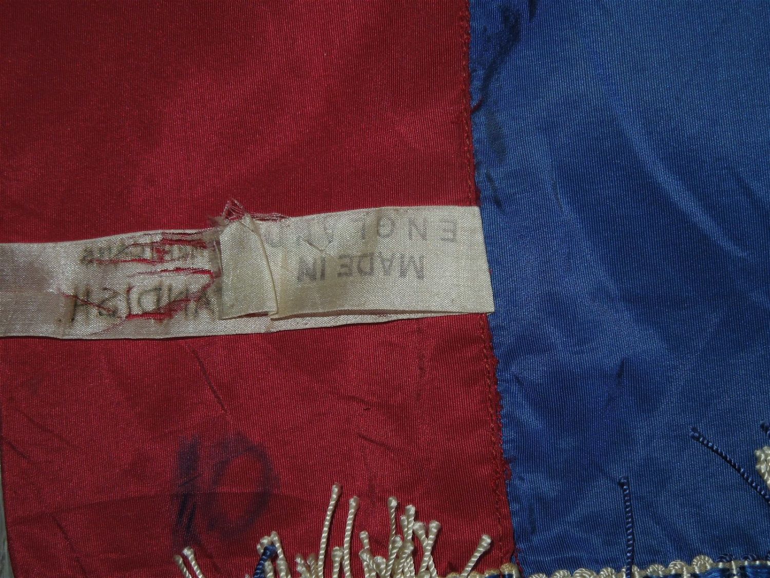 Original Rodnam Wanamaker Circa 1903 – 1928 flag as shown, measures approximately 74 inches by 74 inches and is made in England. Good condition with some soiling and tattered tags.