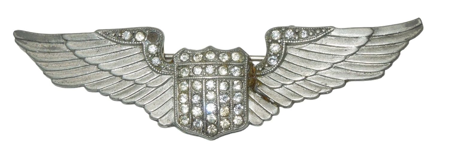 WWII full-size three-inch US Army Air Force sweetheart / home front pin back wings adorned with rhinestones. Separately applied reverse on a thin pliable metal front.