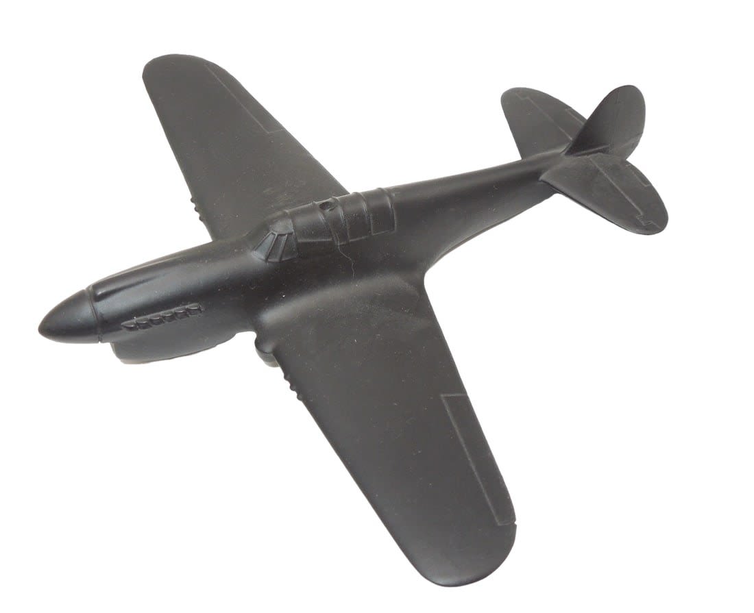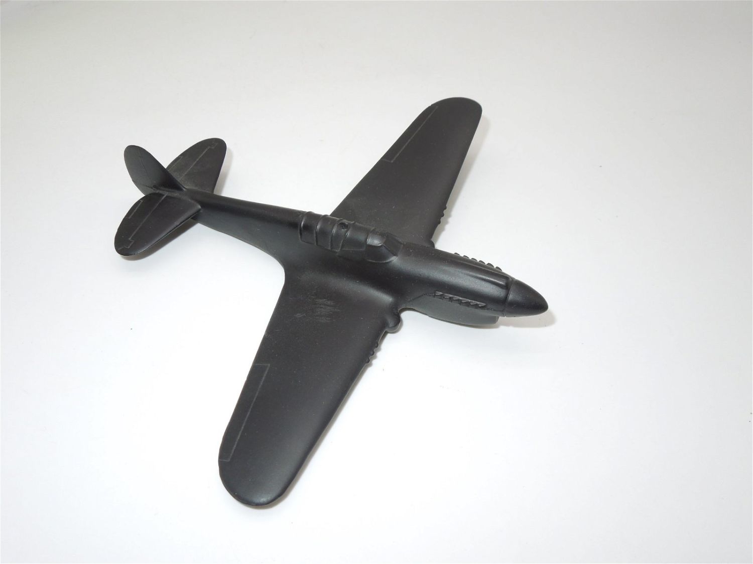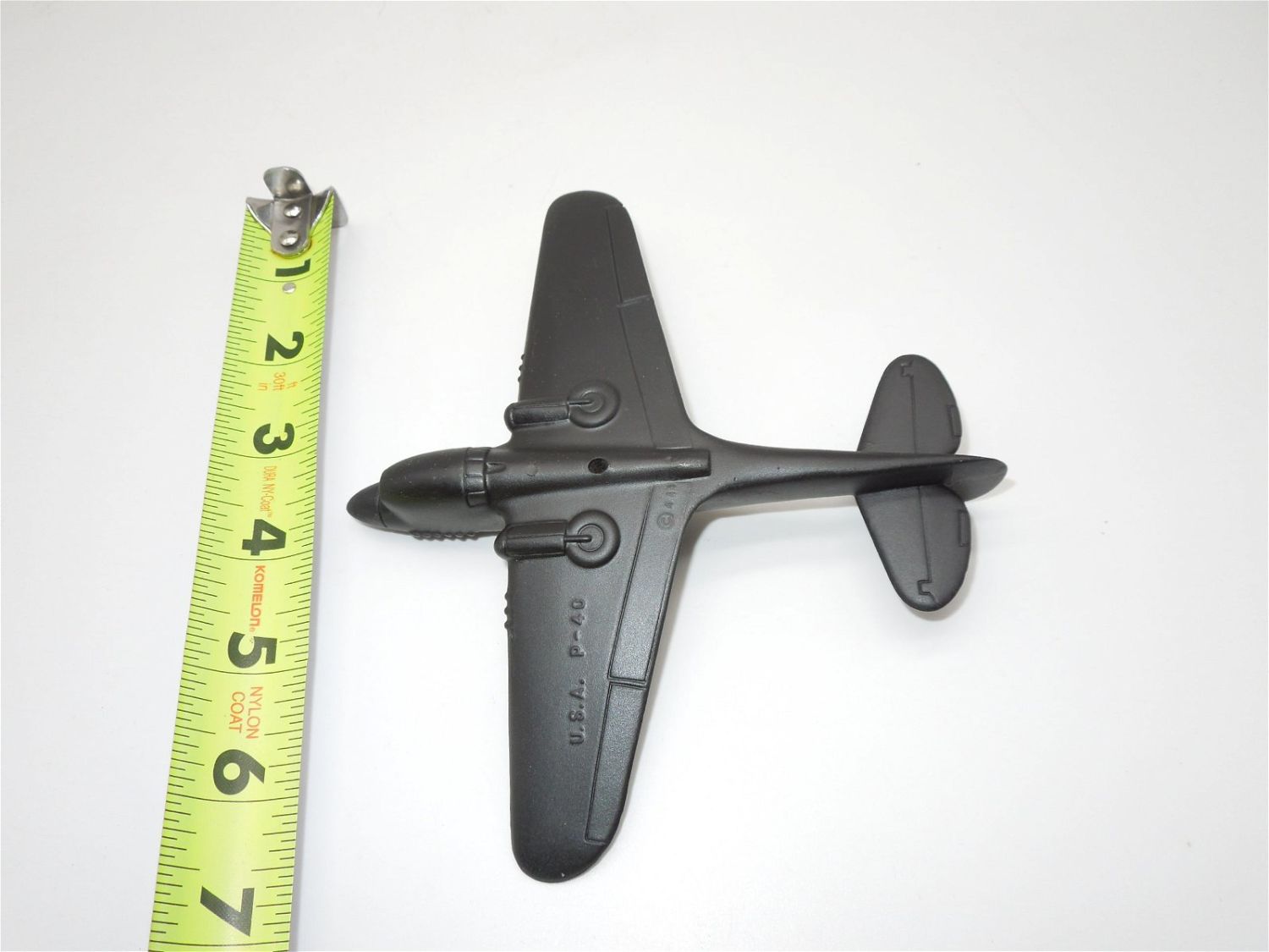 1940s Curtiss P-40 Warhawk Fighter Aircraft Recognition Model Plane. Cast matte black plastic model. Approximate size is 6.5 x 6 x 1 inches. Nice condition for its age.