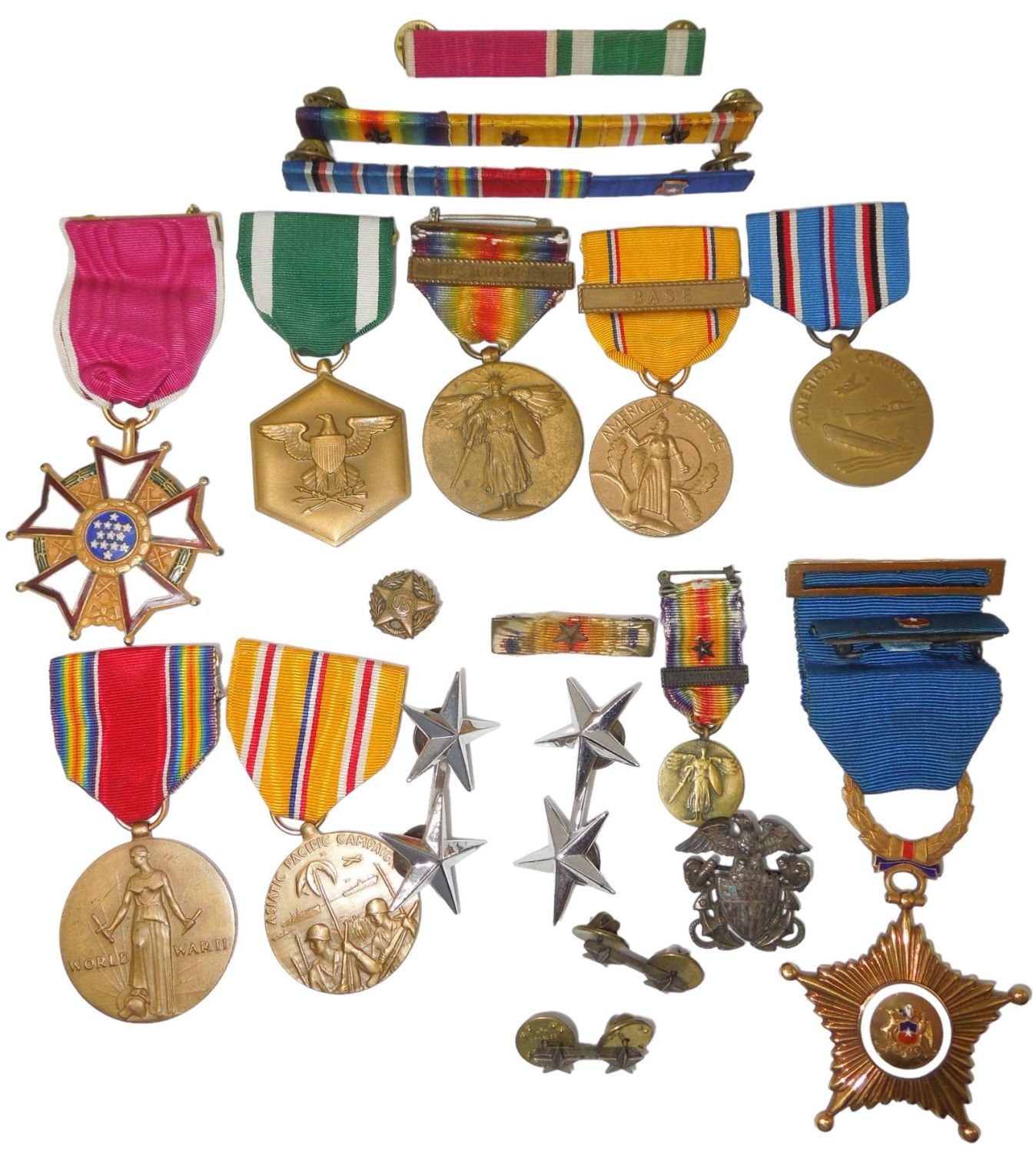 WWII – Korean War Rear Admiral’s attributed group. Stars are sterling, and the Chile medal is just shy of 26 grams of 14K Gold (each part marked "14").