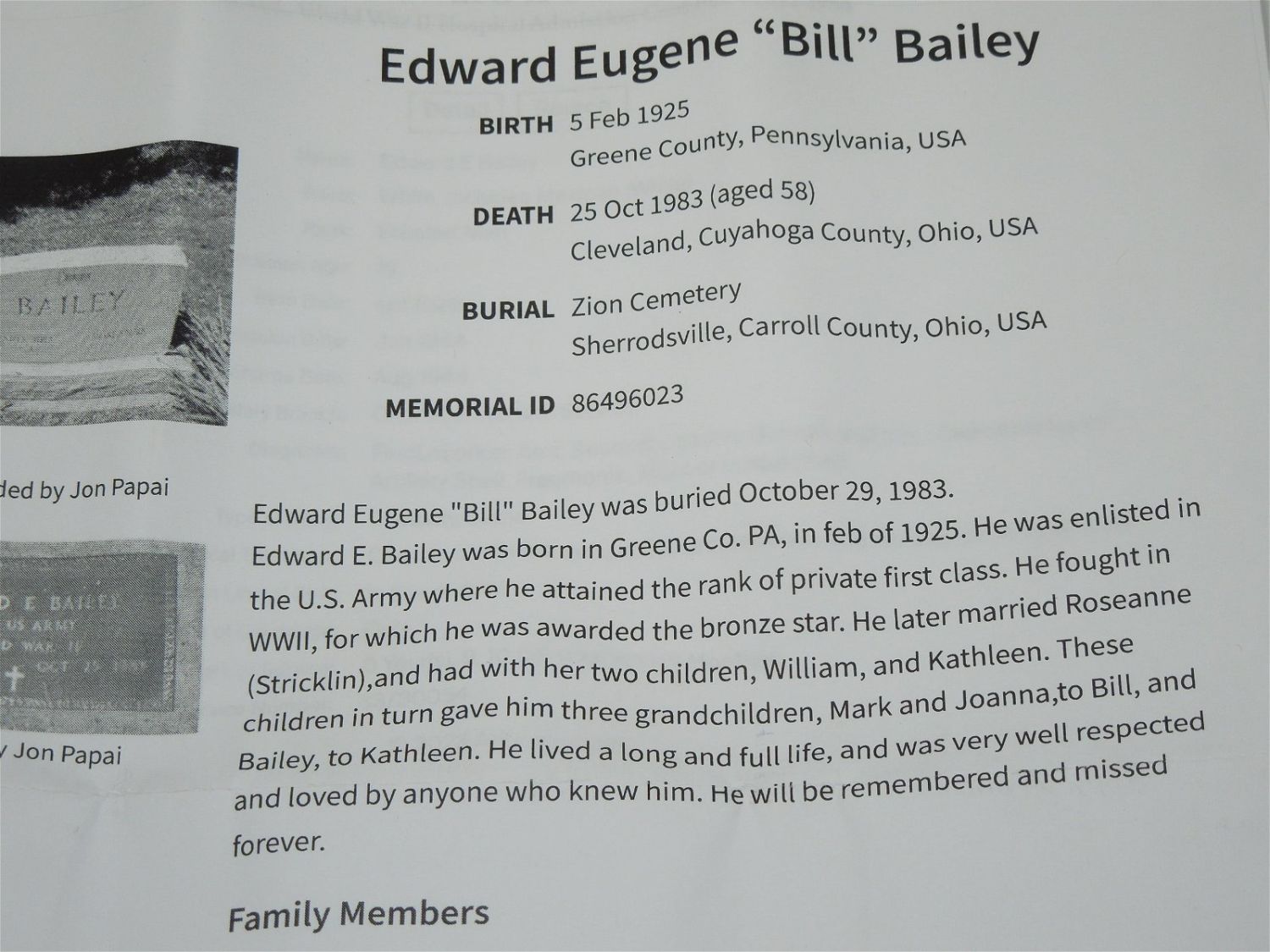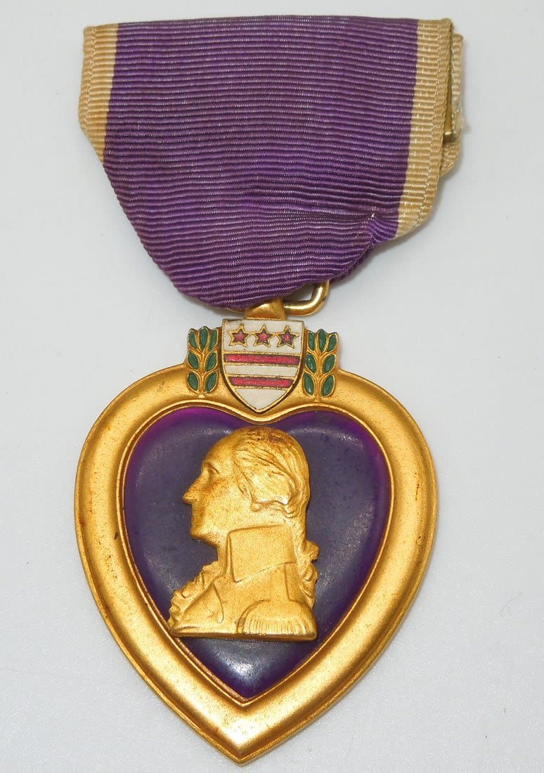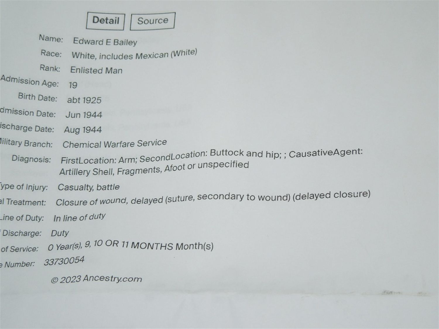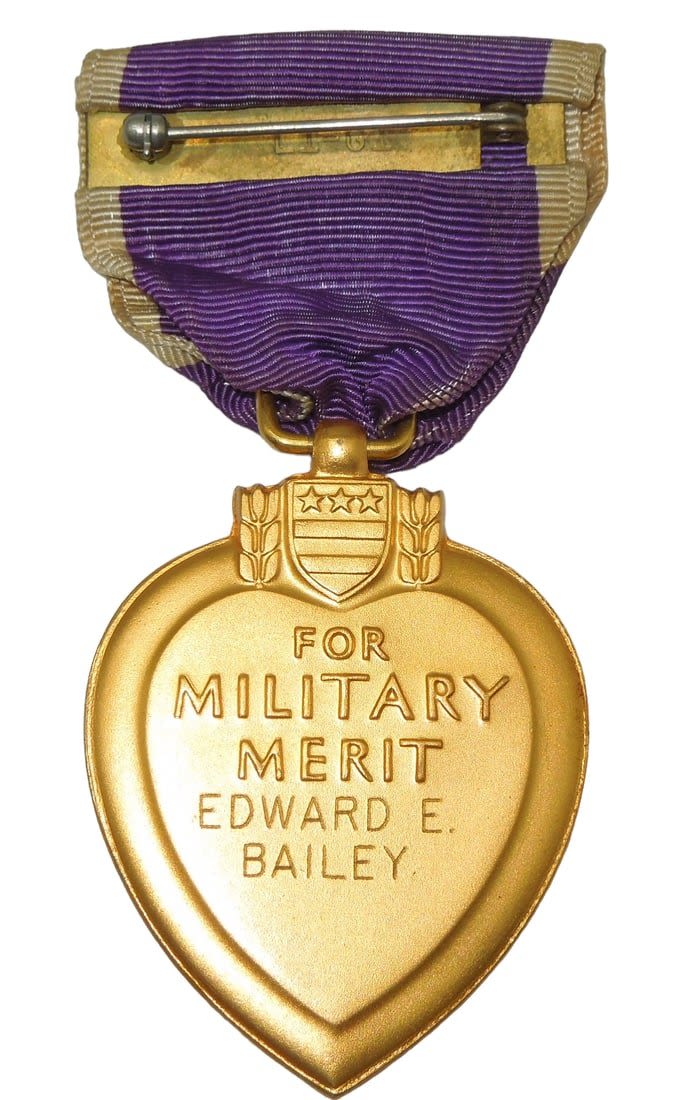 Original crimp brooch post WWII issue government engraved medal to Edward E. Bailey for wounds received in action, Comes with some copied research.