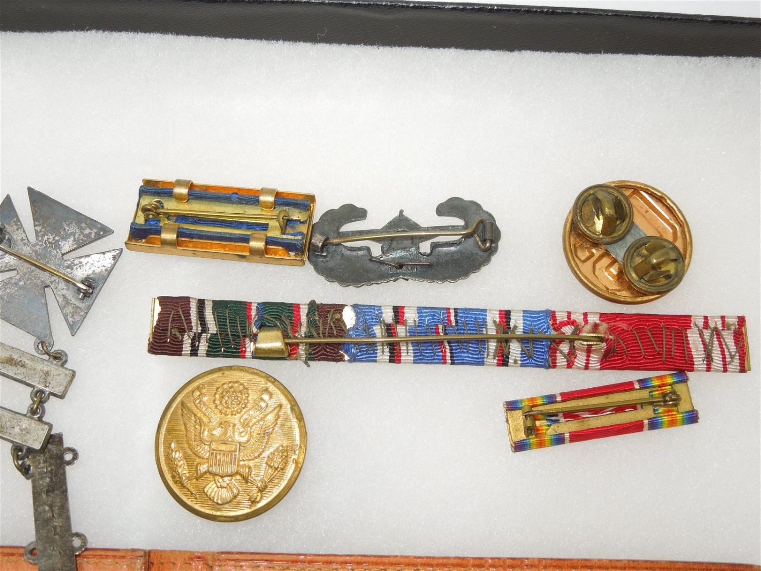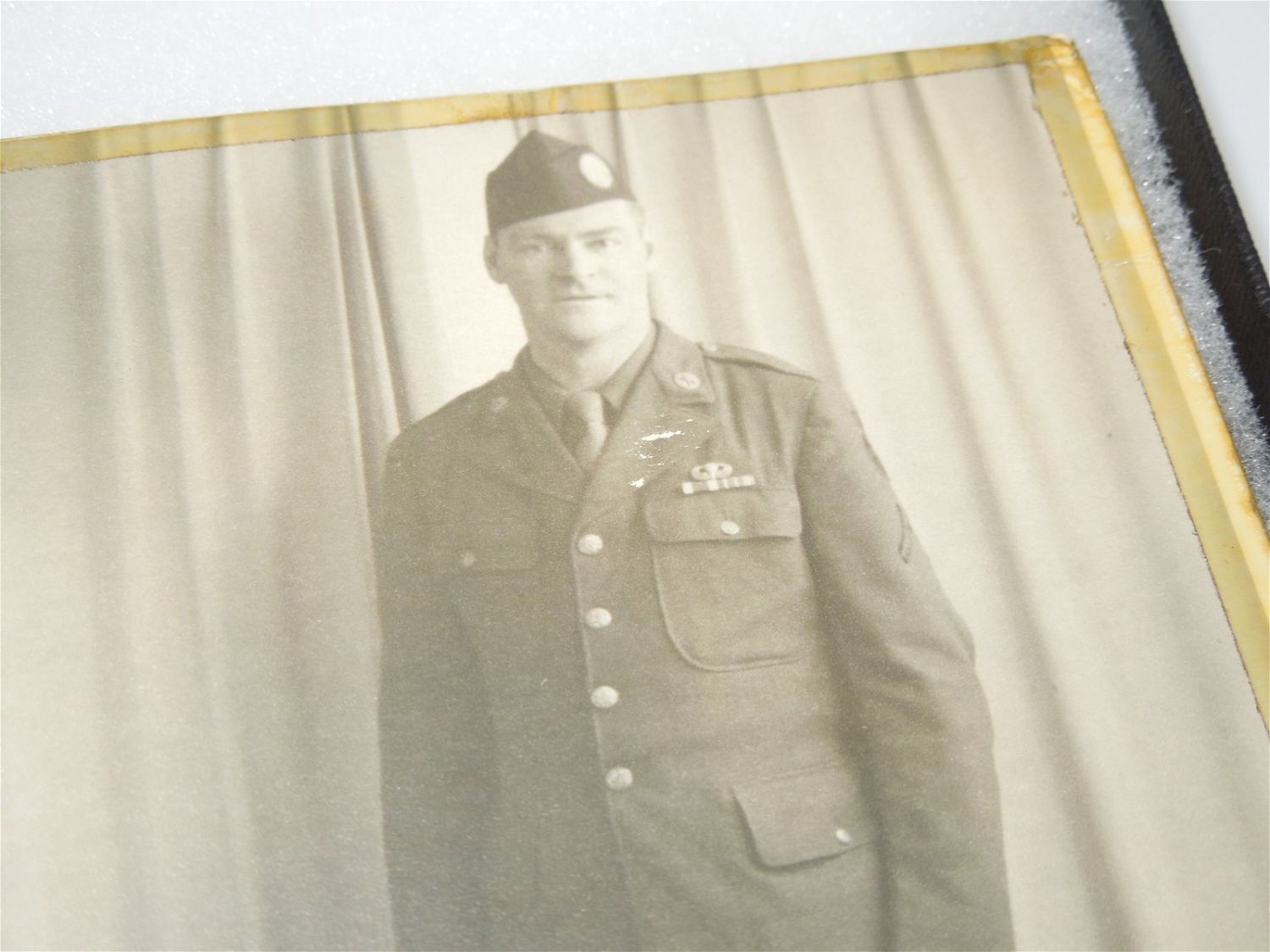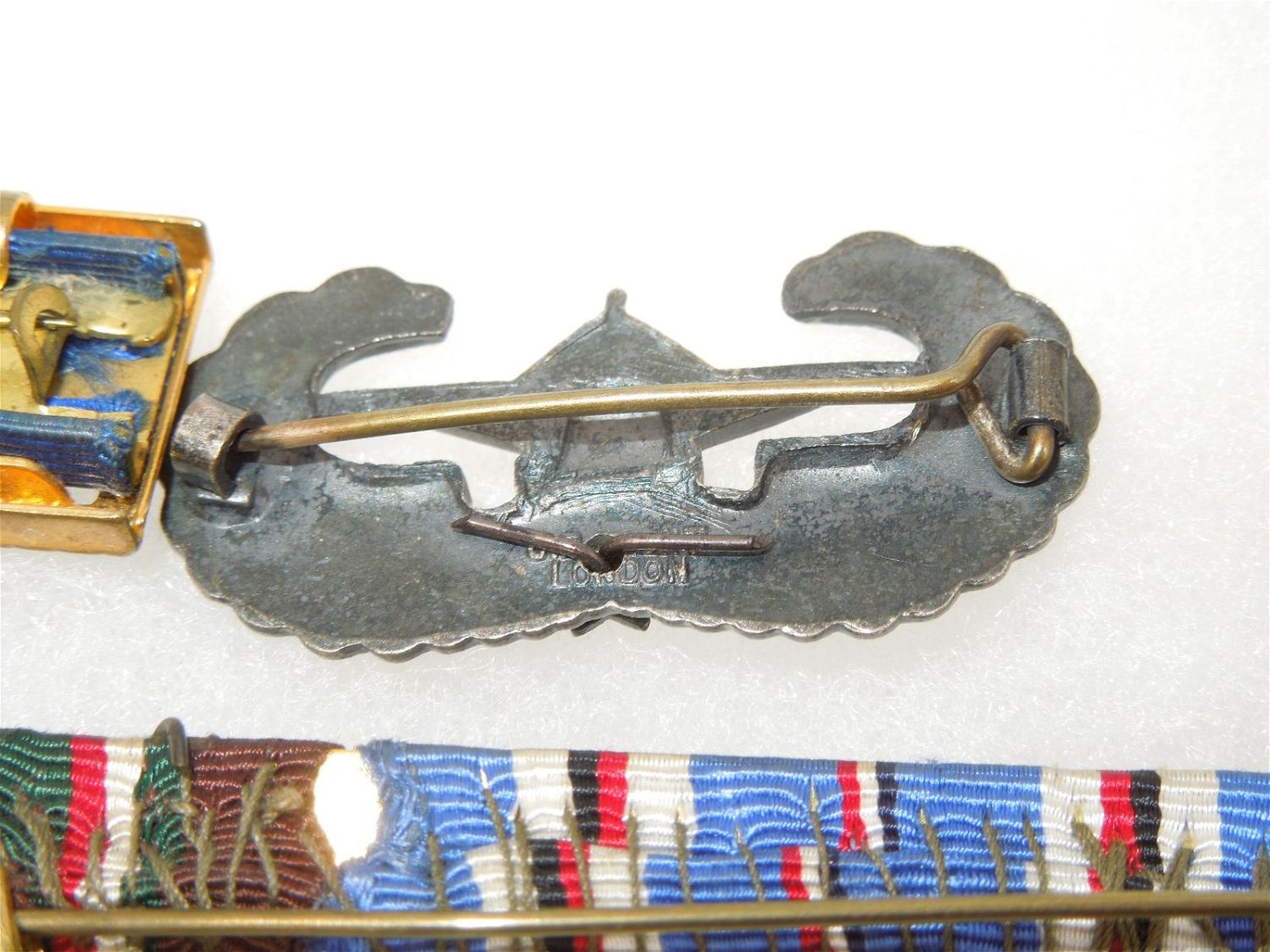 WWII Unnamed Glider Group as shown. This group is how the consignor received it years ago. The group is not named. It comes with a Glider Wing with a combat star. The wing is British made J.R. Gaunt London. Also, included are ribbons, PUC, photos, letter, cords, matches and more. One photo is dated 1944. Good overall condition. The display case does not come with this group.