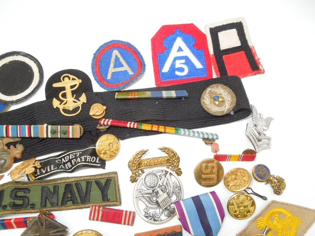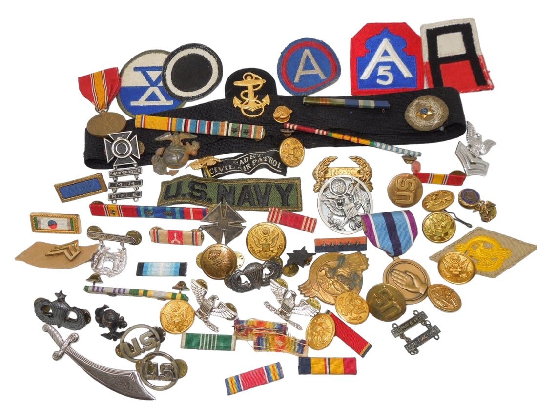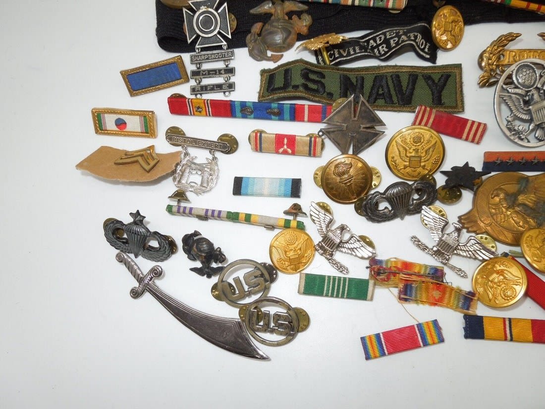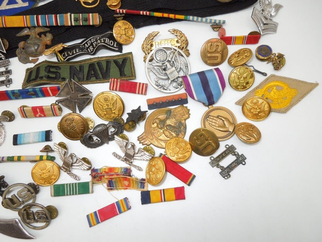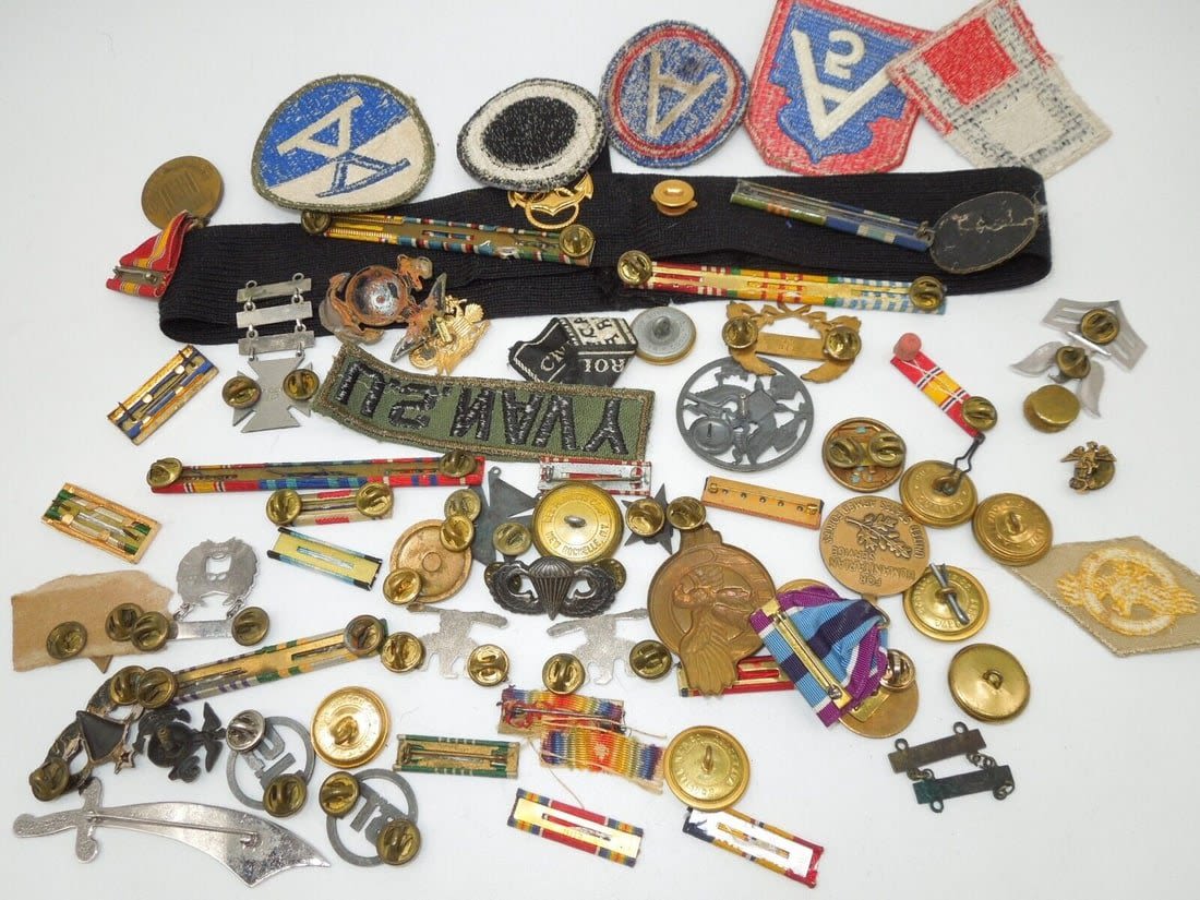 Large lot of misc. Pre WWII – Vietnam Military insignia. Most are in good condition but a few may have missing/broken pins on the back.